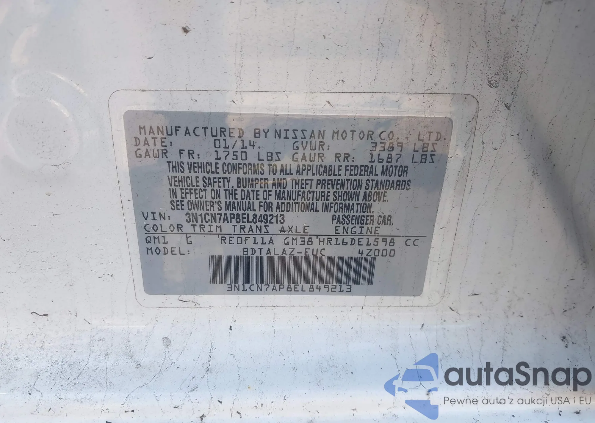 VIN: 3N1CN7AP8EL849213