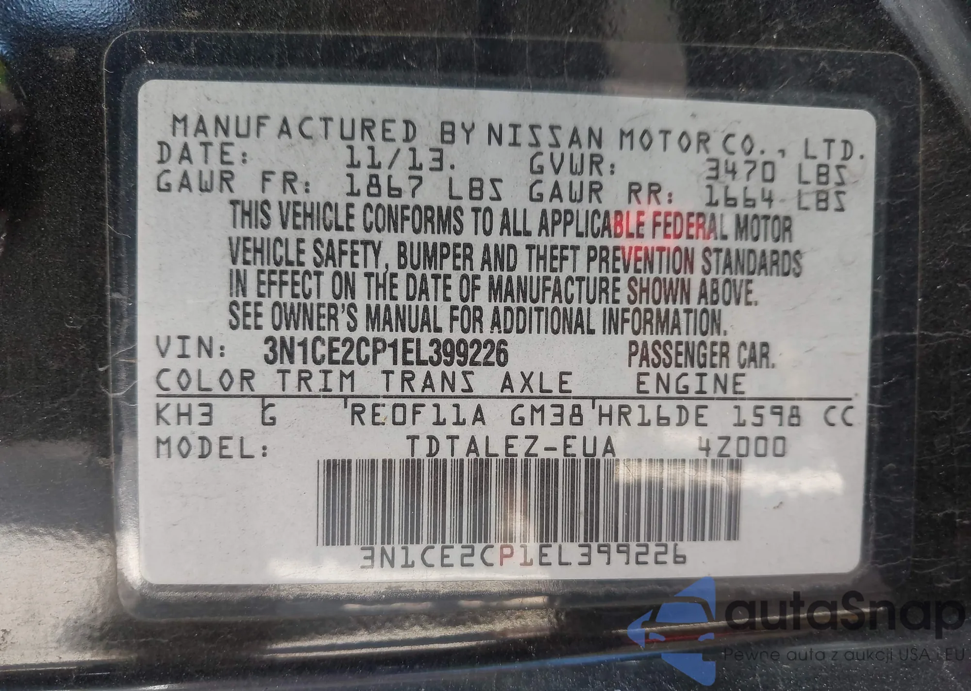 VIN: 3N1CE2CP1EL399226