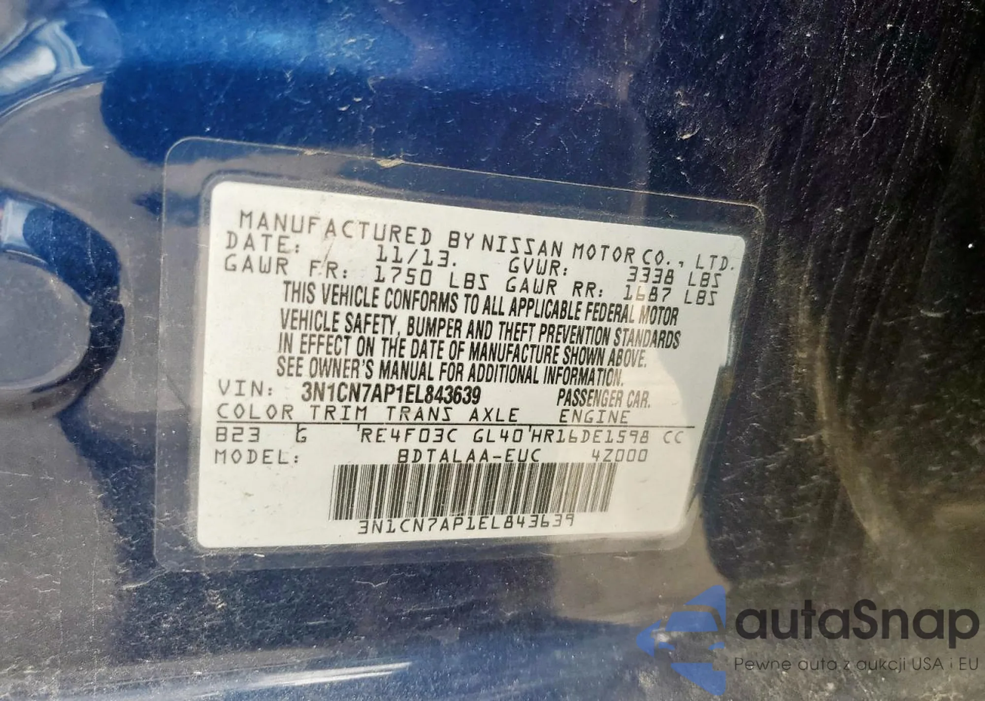 VIN: 3N1CN7AP1EL843639