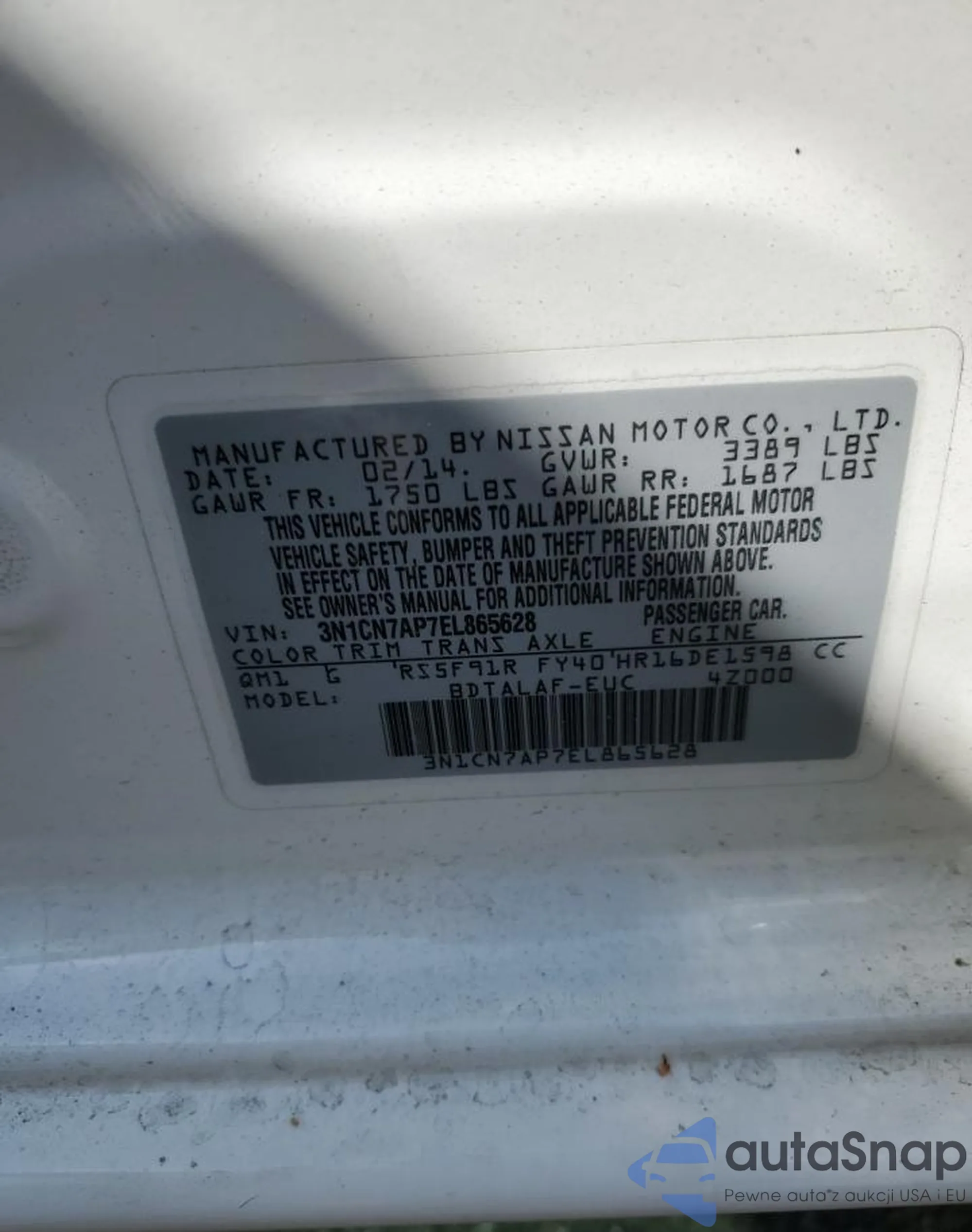 • VIN: 3N1CN7AP7EL865628