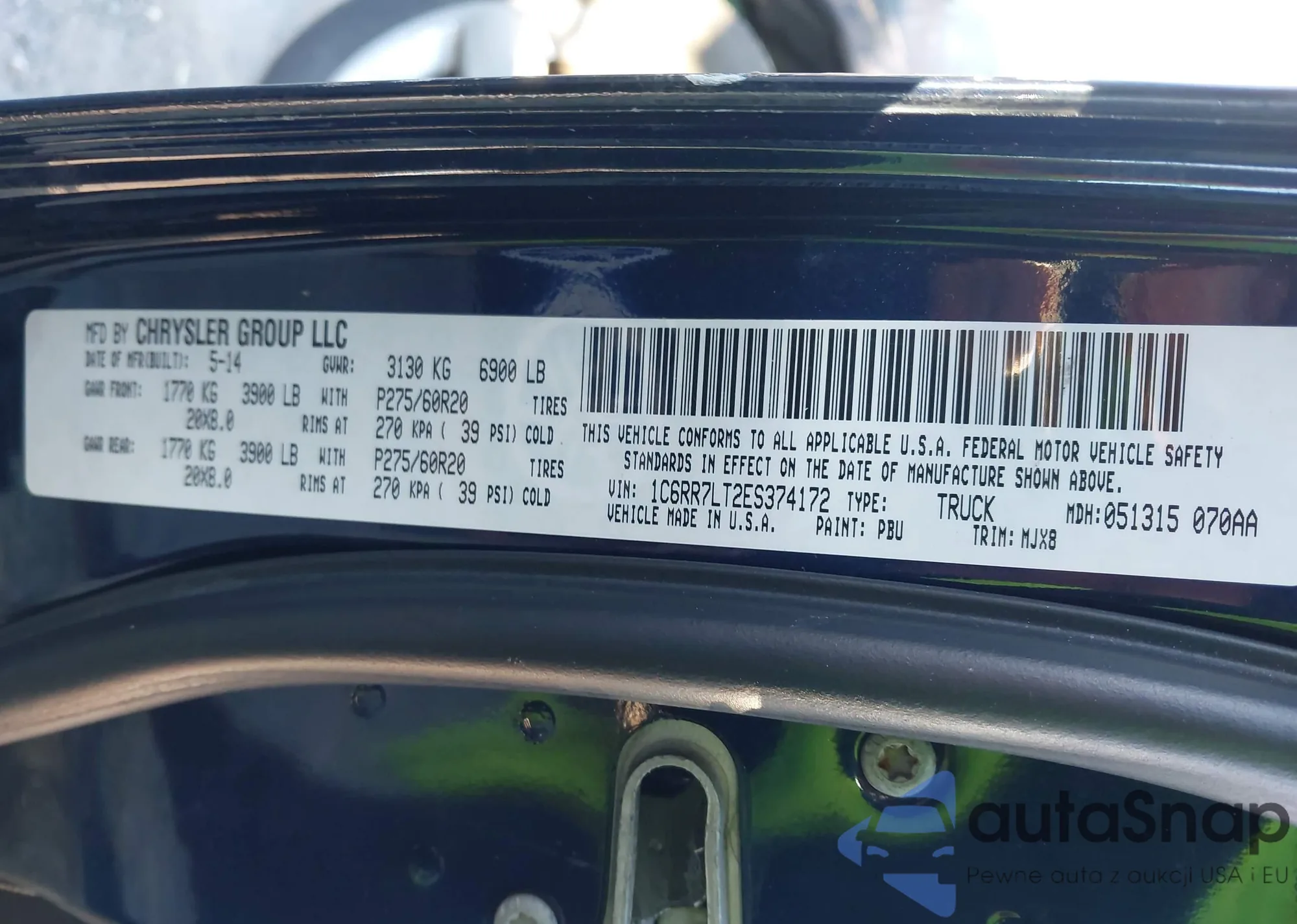The car RAM 1500 2014 (VIN 1C6RR7LT2ES374172) has not been auctioned before. The documents are clean, and the mileage matches or is below the market average. Sold by an insurance company – we recommend purchase. Delivery to the port will take approx. 6–8 weeks.