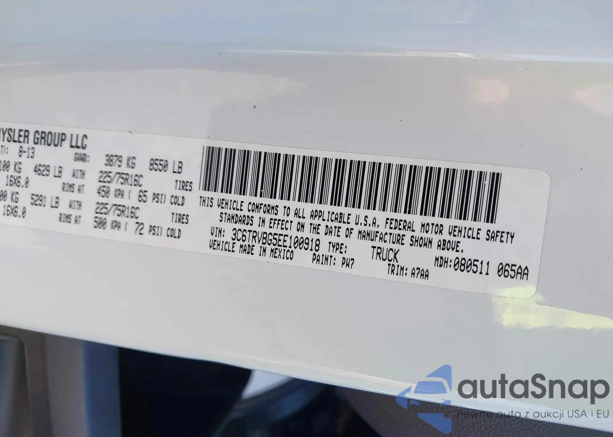 VIN: 3C6TRVBG5EE100918