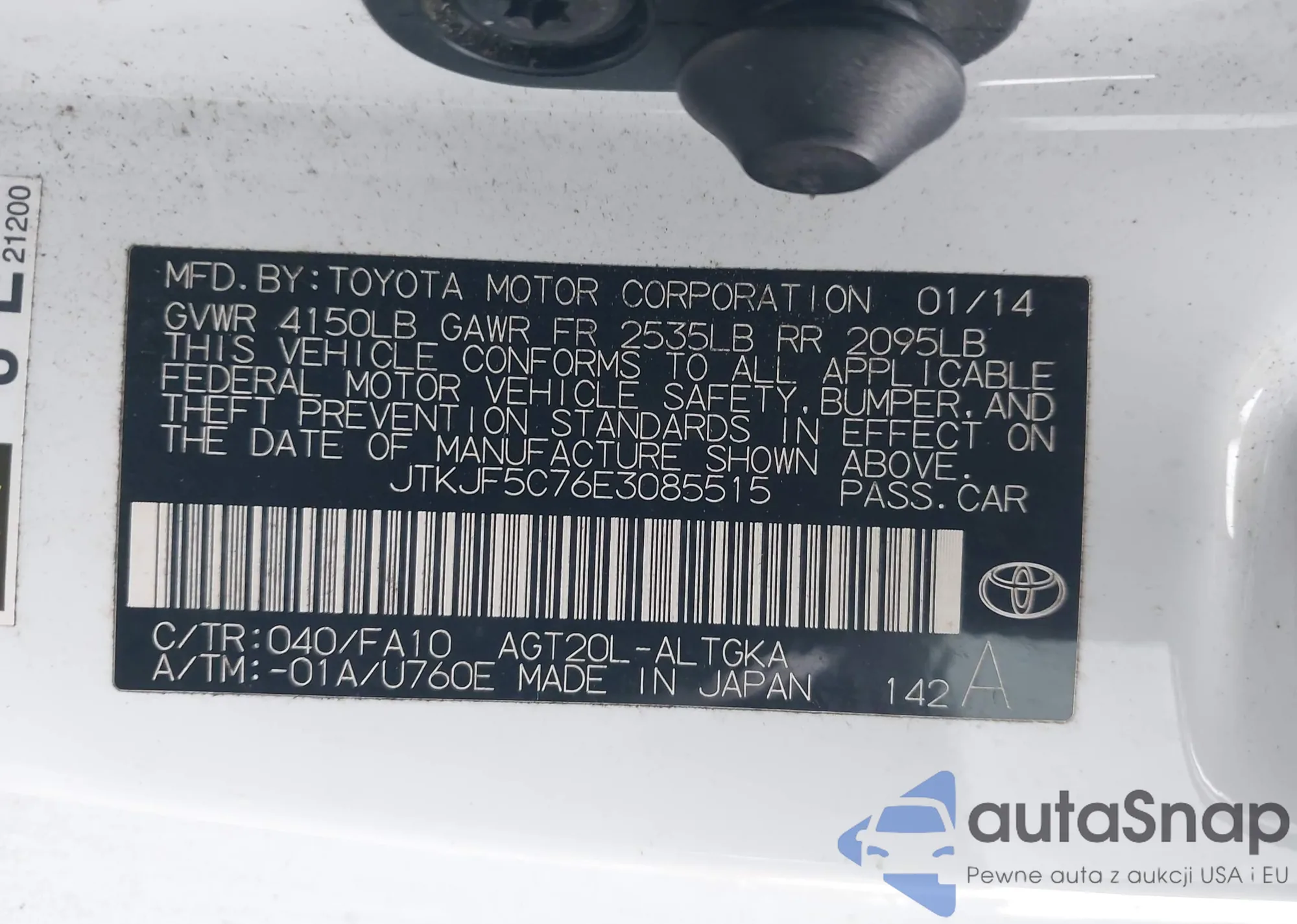 VIN: JTKJF5C76E3085515