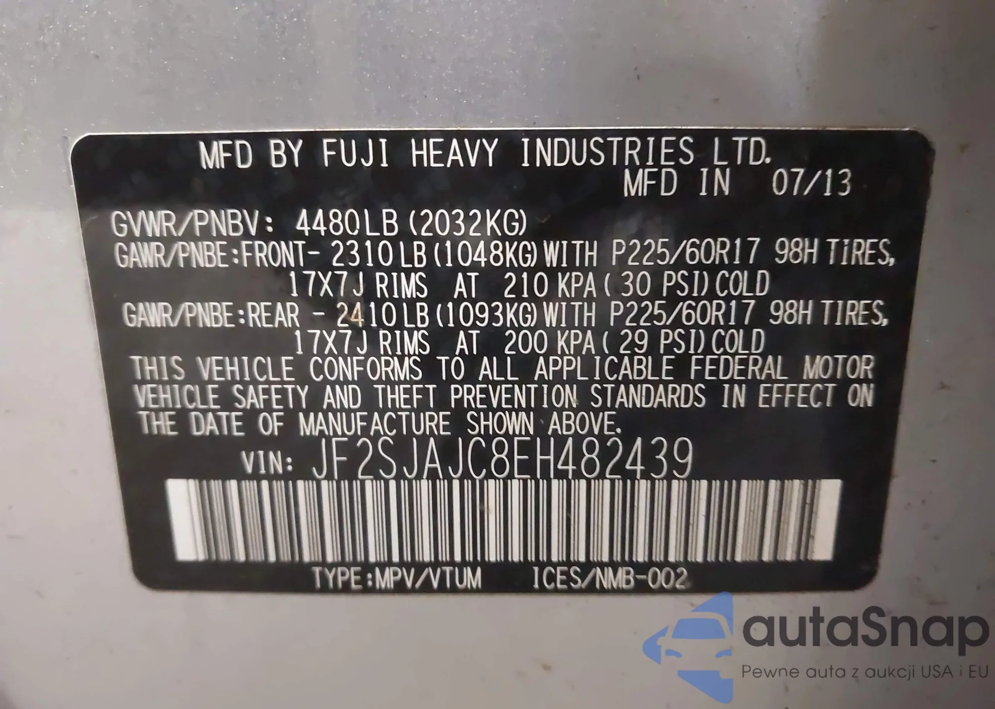VIN: JF2SJAJC8EH482439