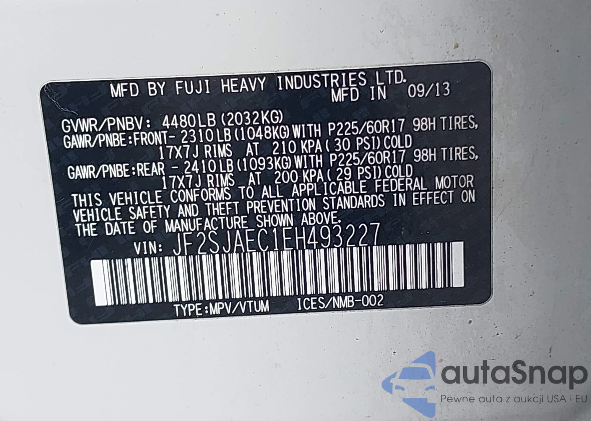 VIN: JF2SJAEC1EH493227