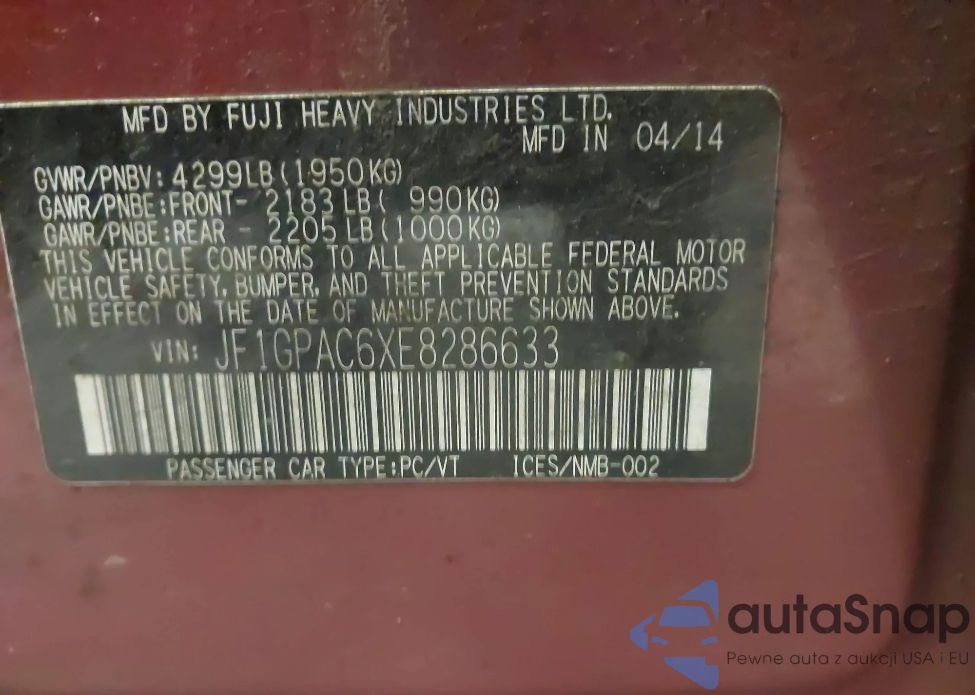 VIN: JF1GPAC6XE8286633