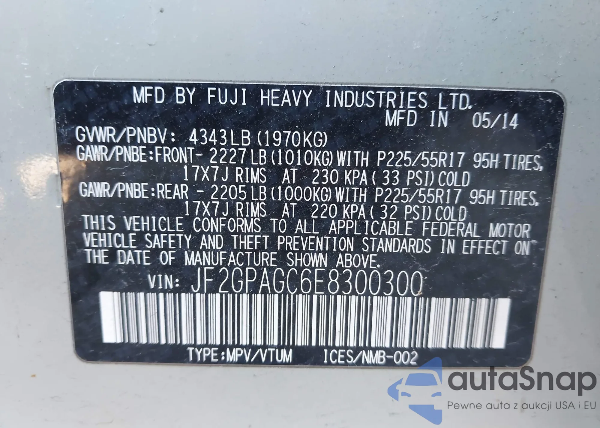 VIN: JF2GPAGC6E8300300