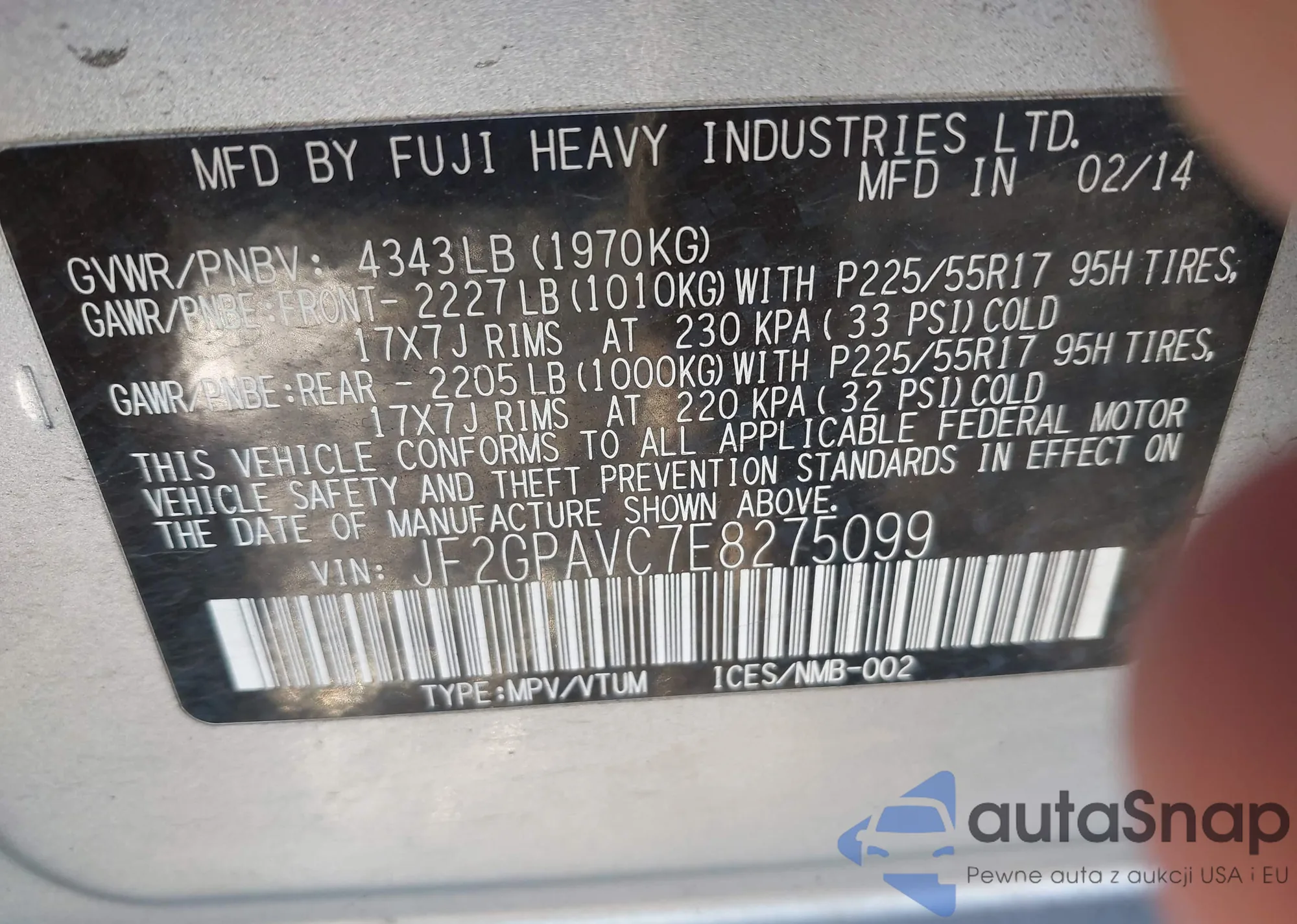 VIN: JF2GPAVC7E8275099