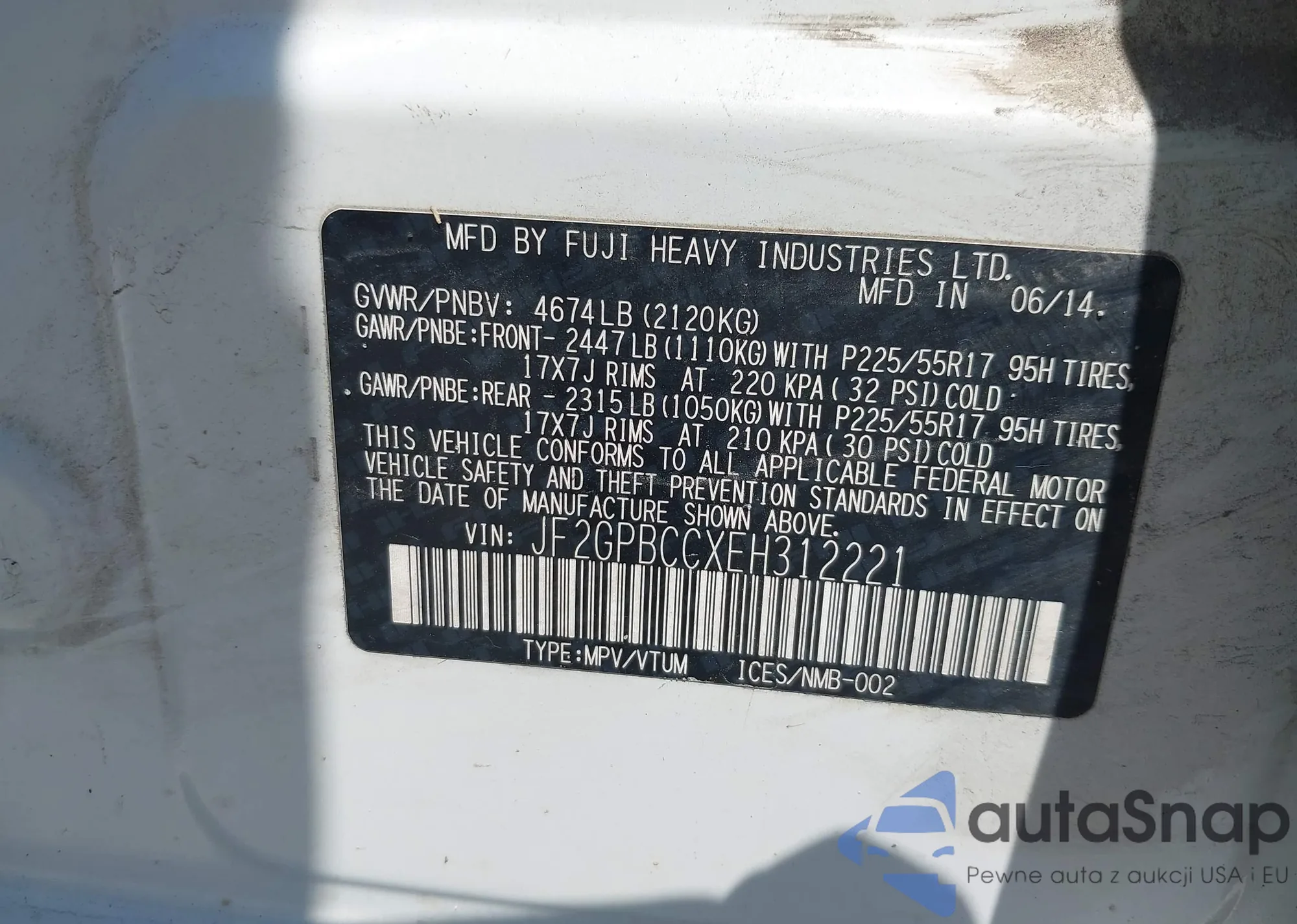 VIN: JF2GPBCCXEH312221
