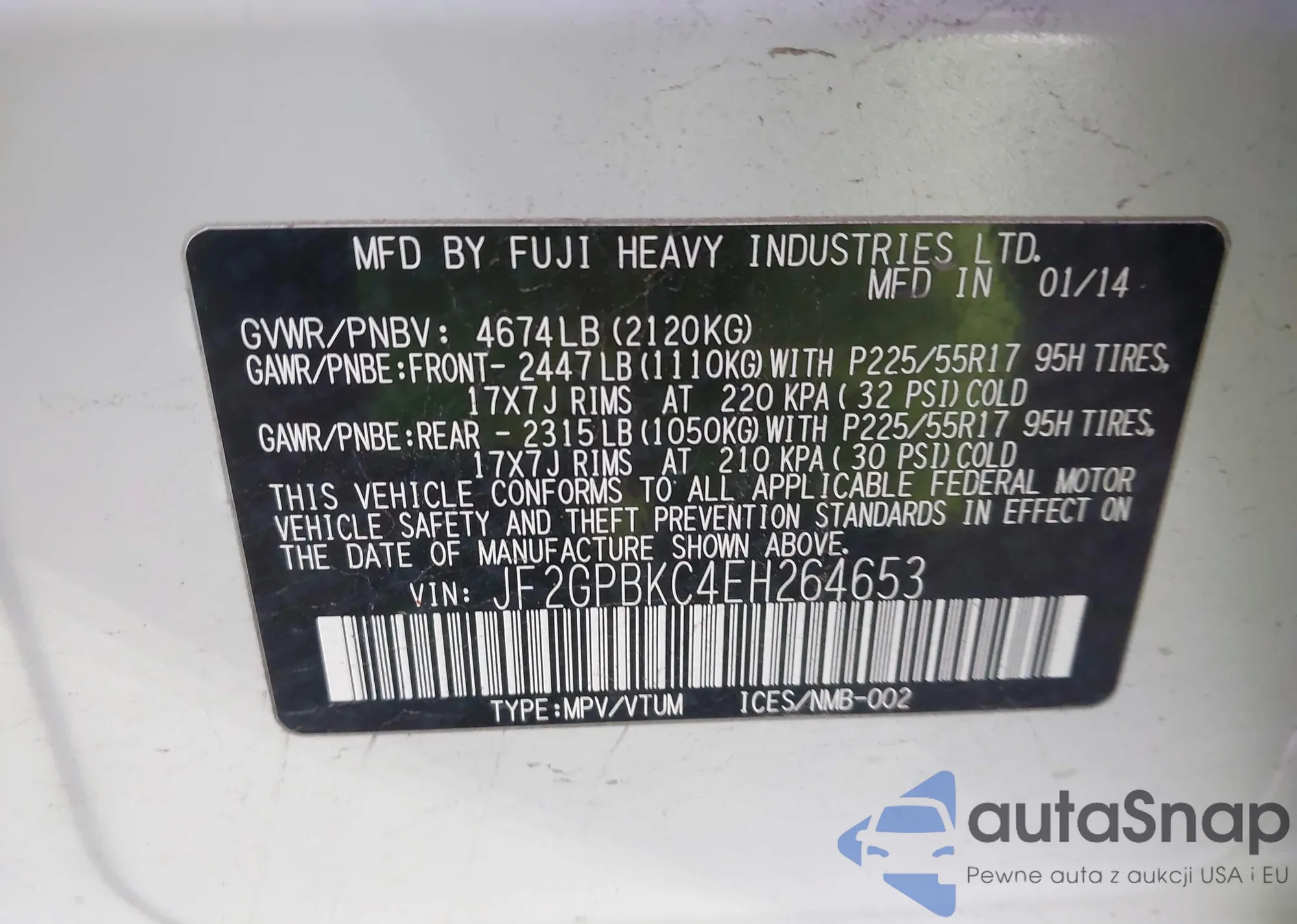 VIN: JF2GPBKC4EH264653