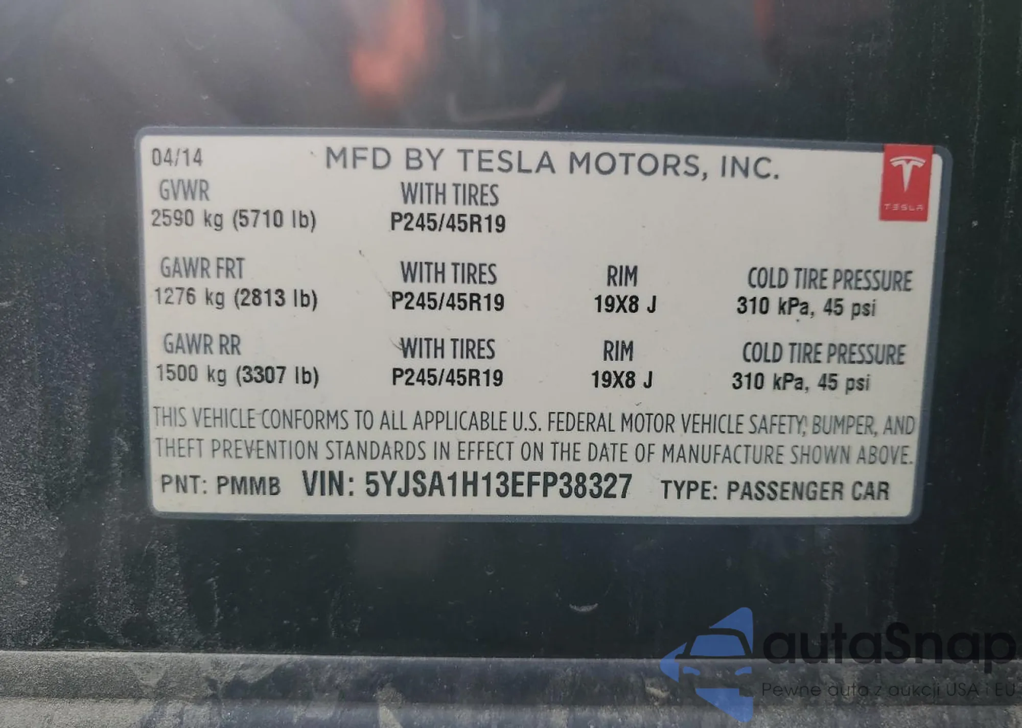 VIN: 5YJSA1H13EFP38327