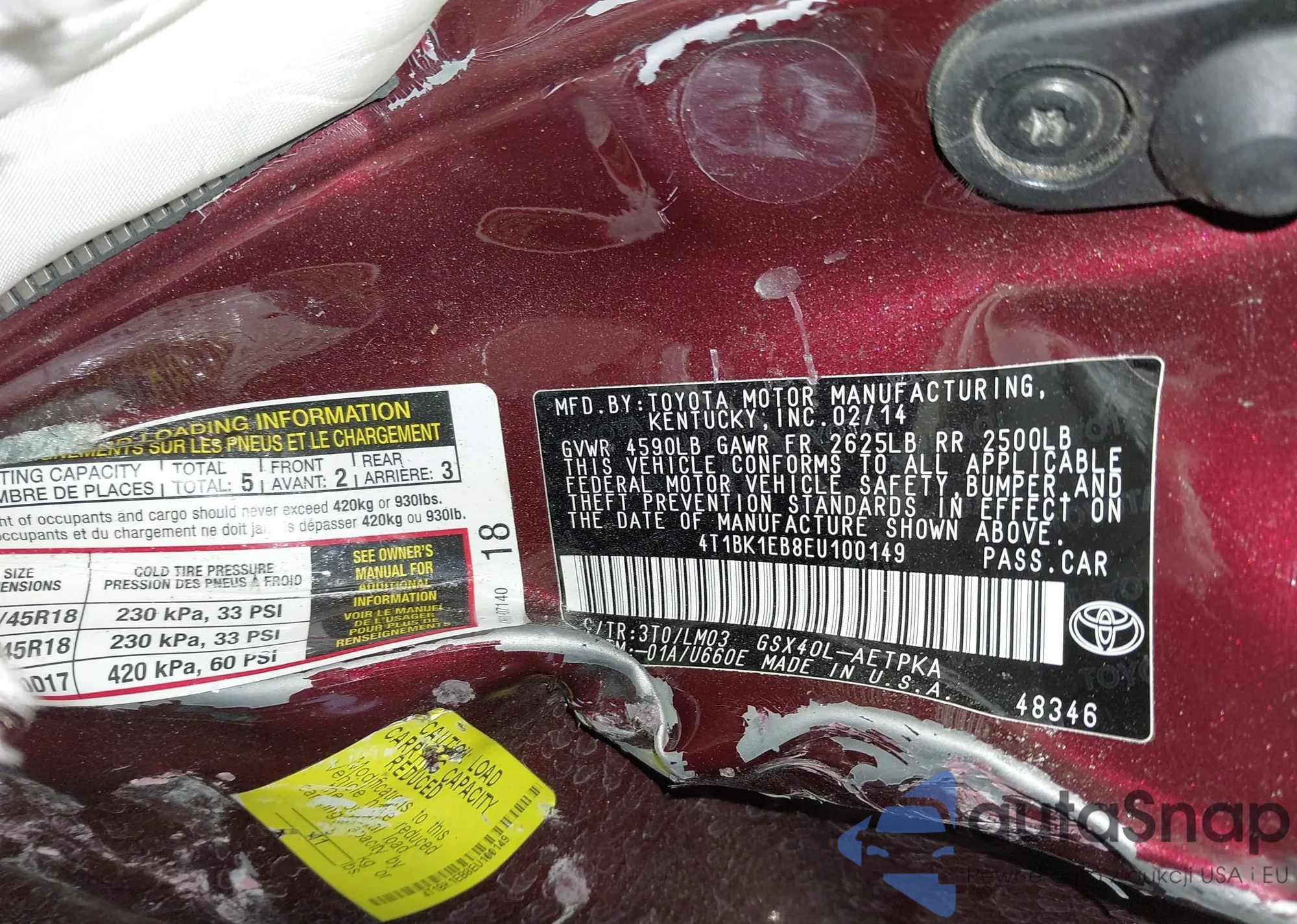• VIN: 4T1BK1EB8EU100149