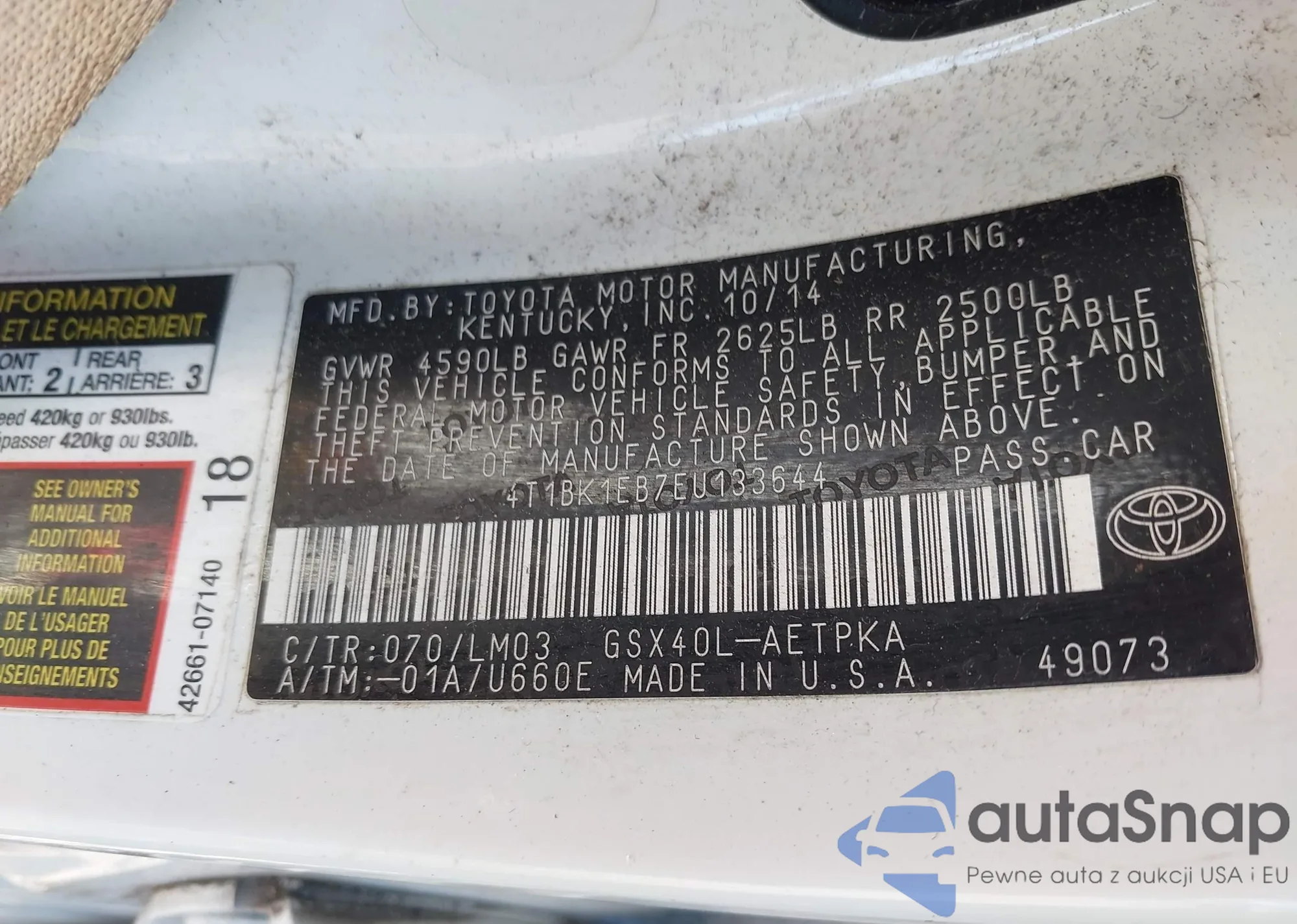 • VIN: 4T1BK1EB7EU133644