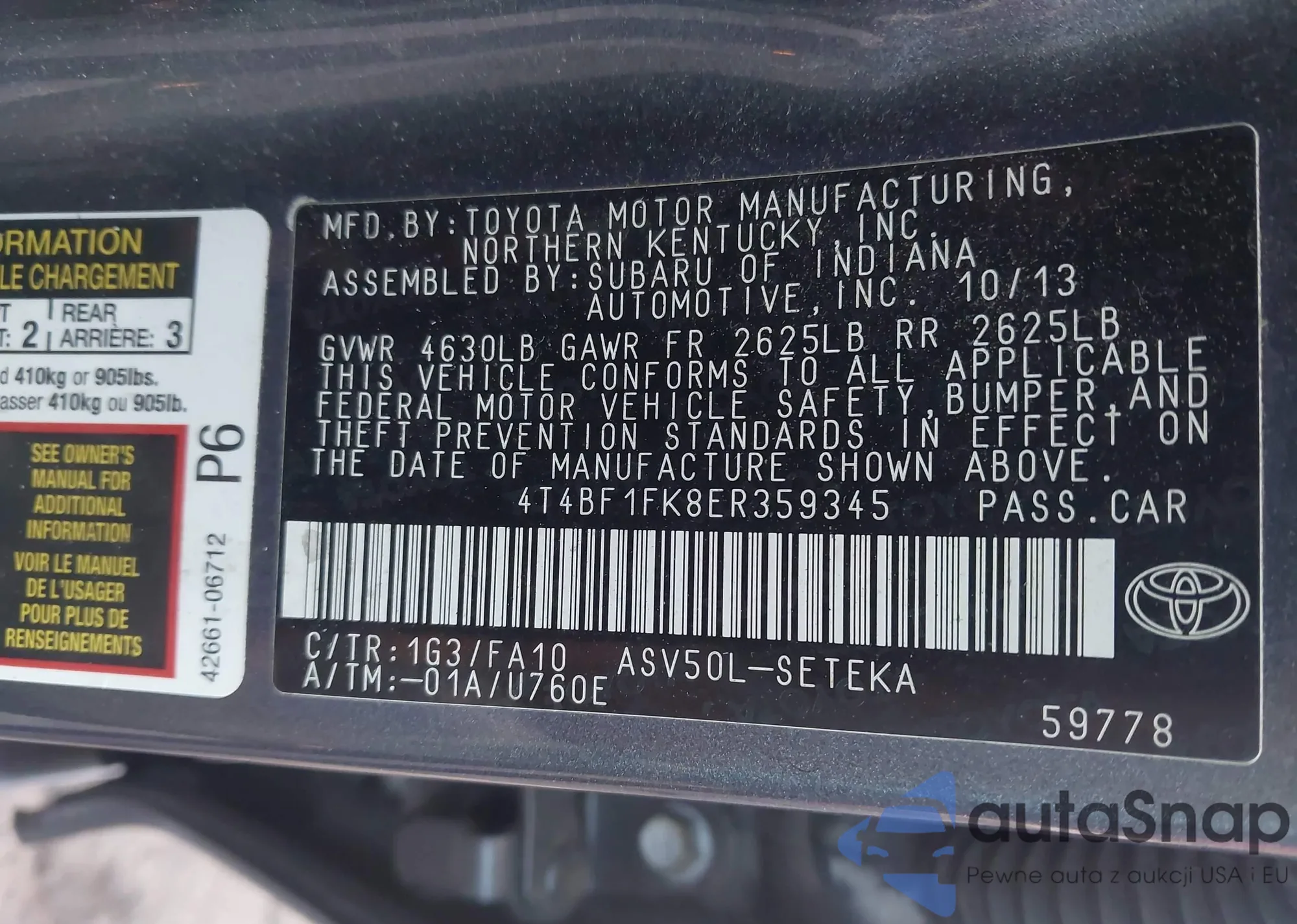 VIN: 4T4BF1FK8ER359345