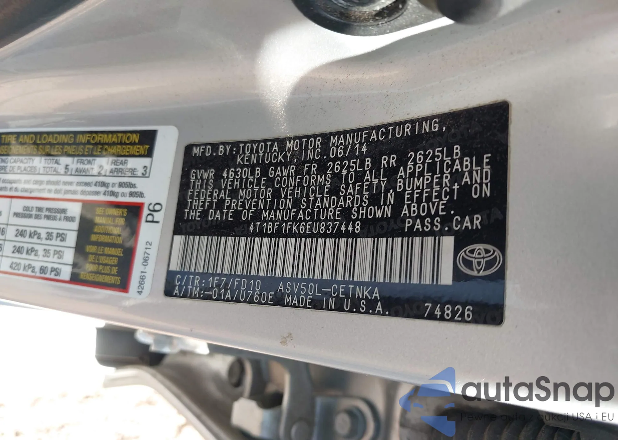 VIN: 4T1BF1FK6EU837448