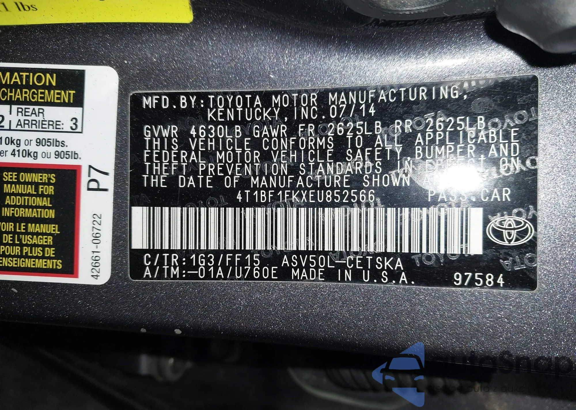 VIN: 4T1BF1FKXEU852566