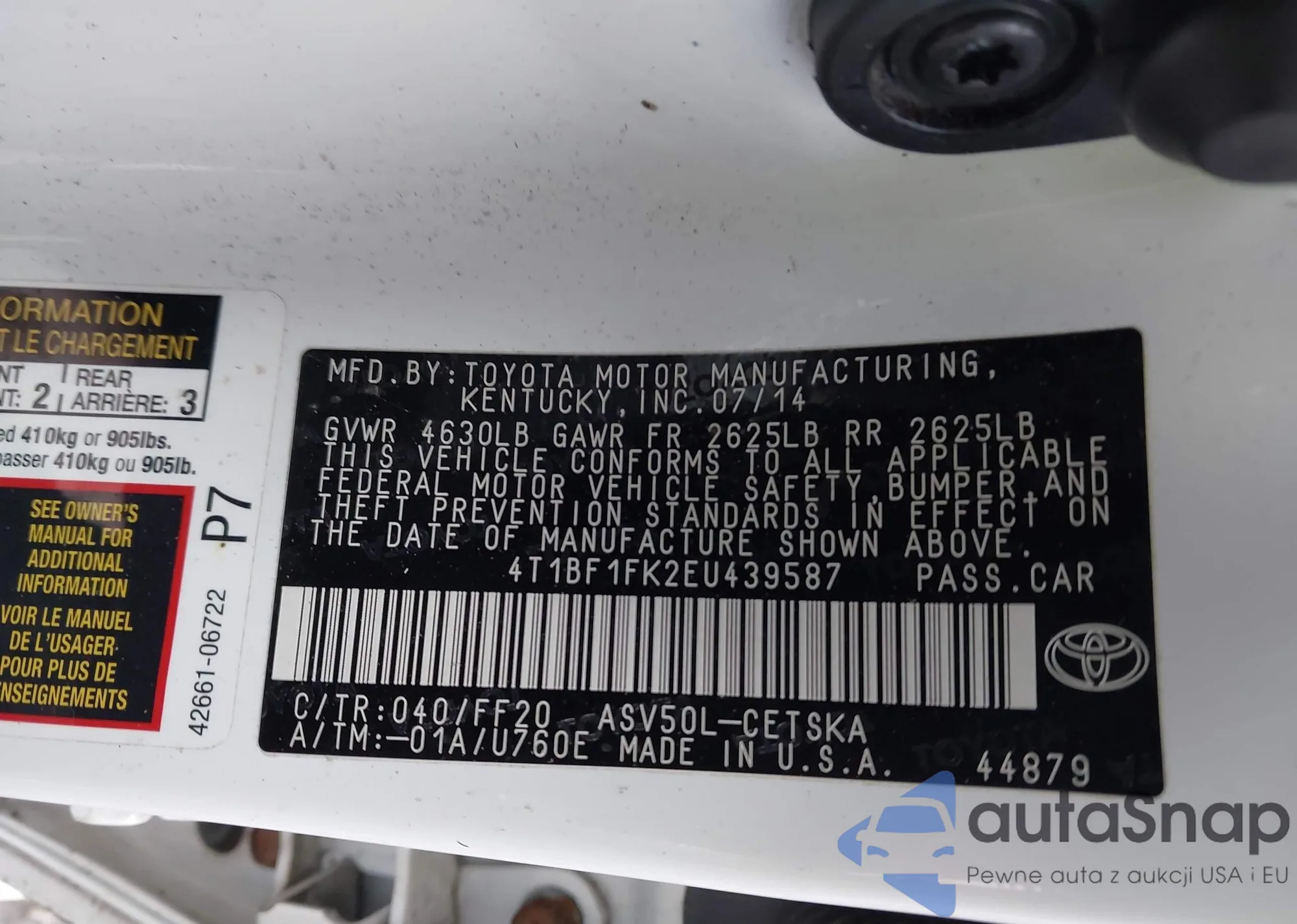 VIN: 4T1BF1FK2EU439587