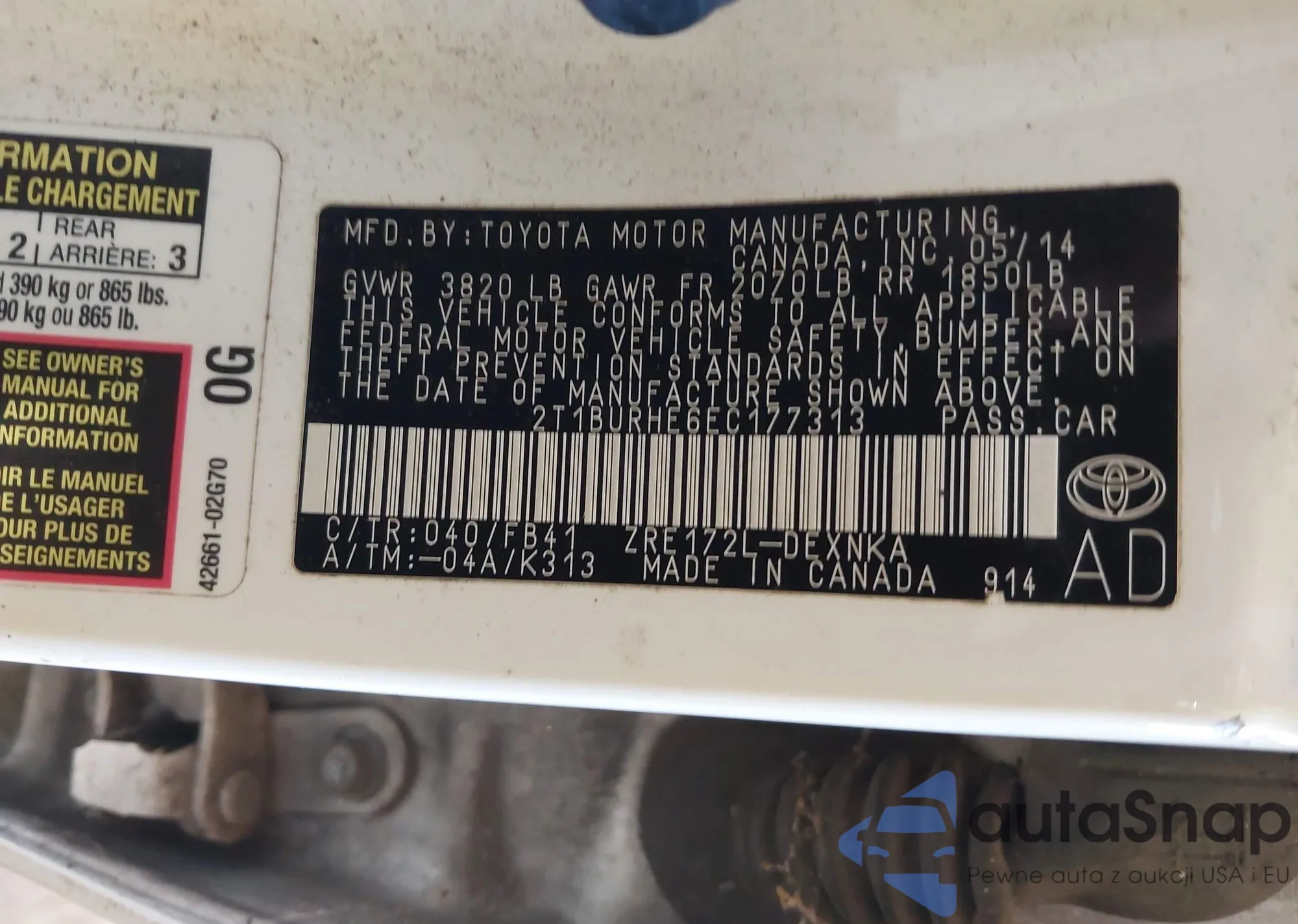 VIN: 2T1BURHE6EC177313