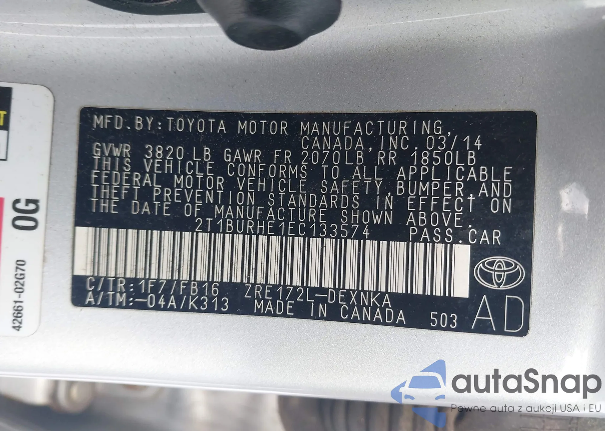 The car Toyota Corolla 2014 (VIN 2T1BURHE1EC133574) has not been auctioned before. The documents are clean, and the mileage matches or is below the market average. Sold by an insurance company – we recommend purchase. Delivery to the port will take approx. 6–8 weeks.