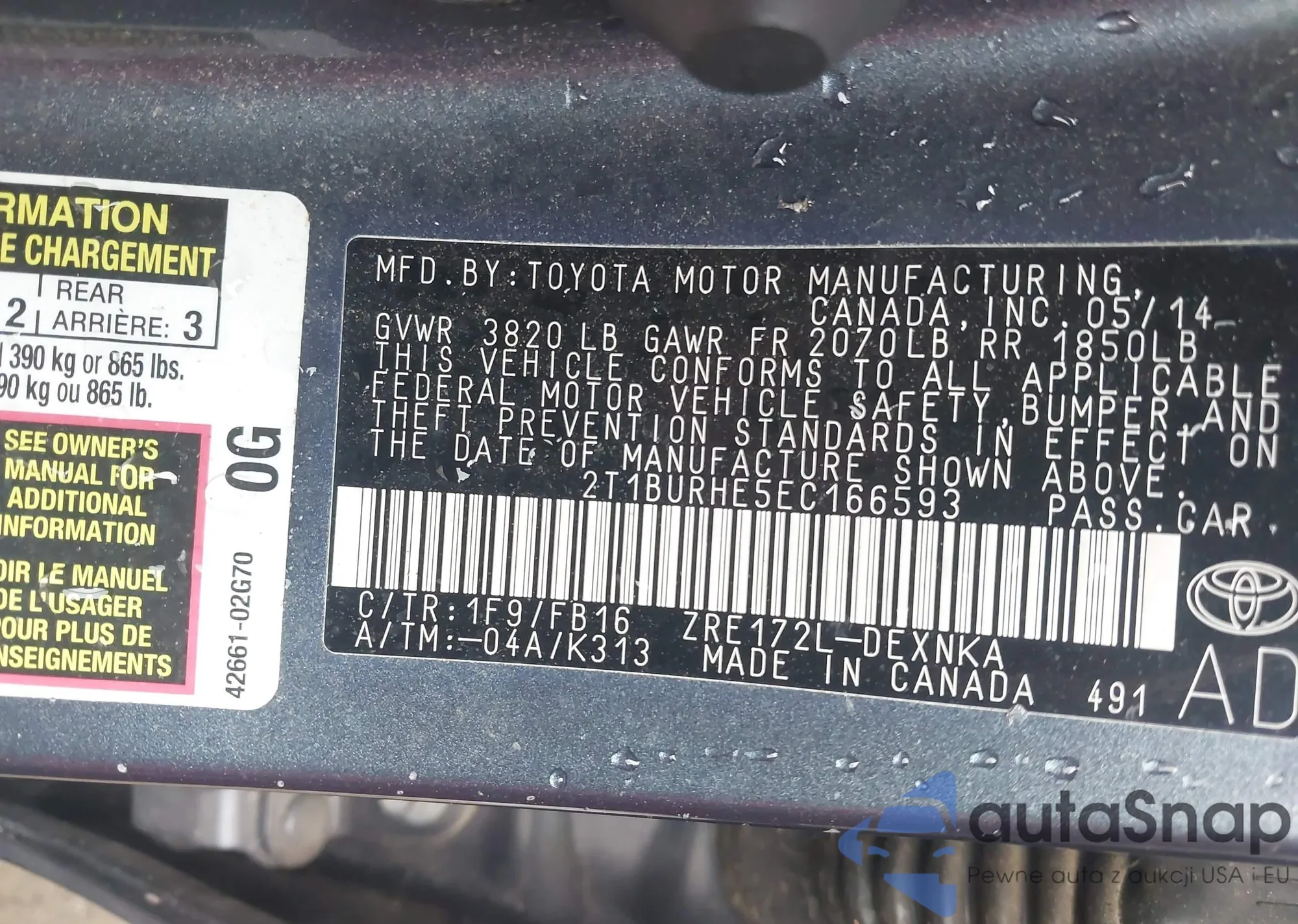 VIN: 2T1BURHE5EC166593
