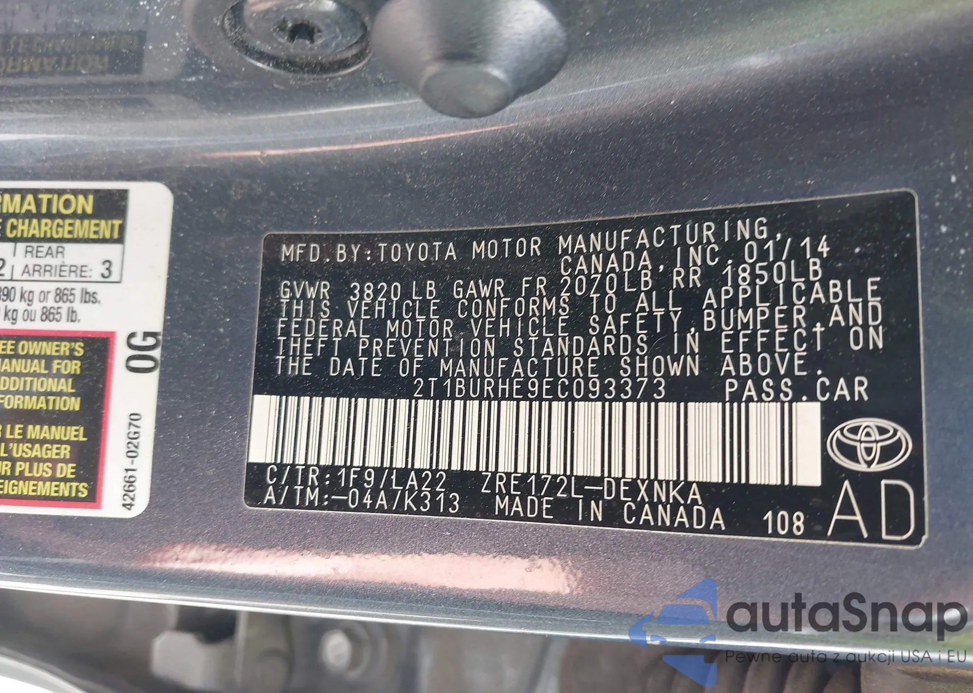 VIN: 2T1BURHE9EC093373