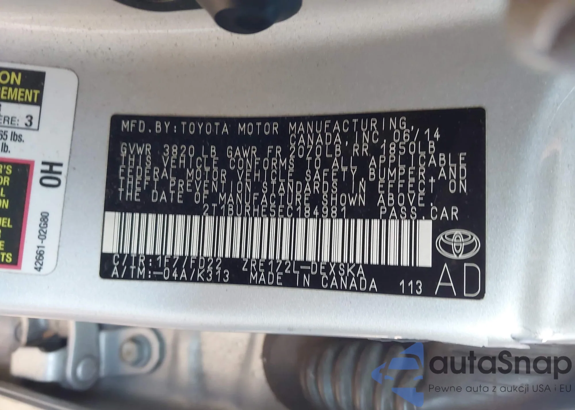 The car Toyota Corolla 2014 (VIN 2T1BURHE5EC184981) has not been auctioned before. The documents are clean, and the mileage matches or is below the market average. Sold by an insurance company – we recommend purchase. Delivery to the port will take approx. 6–8 weeks.