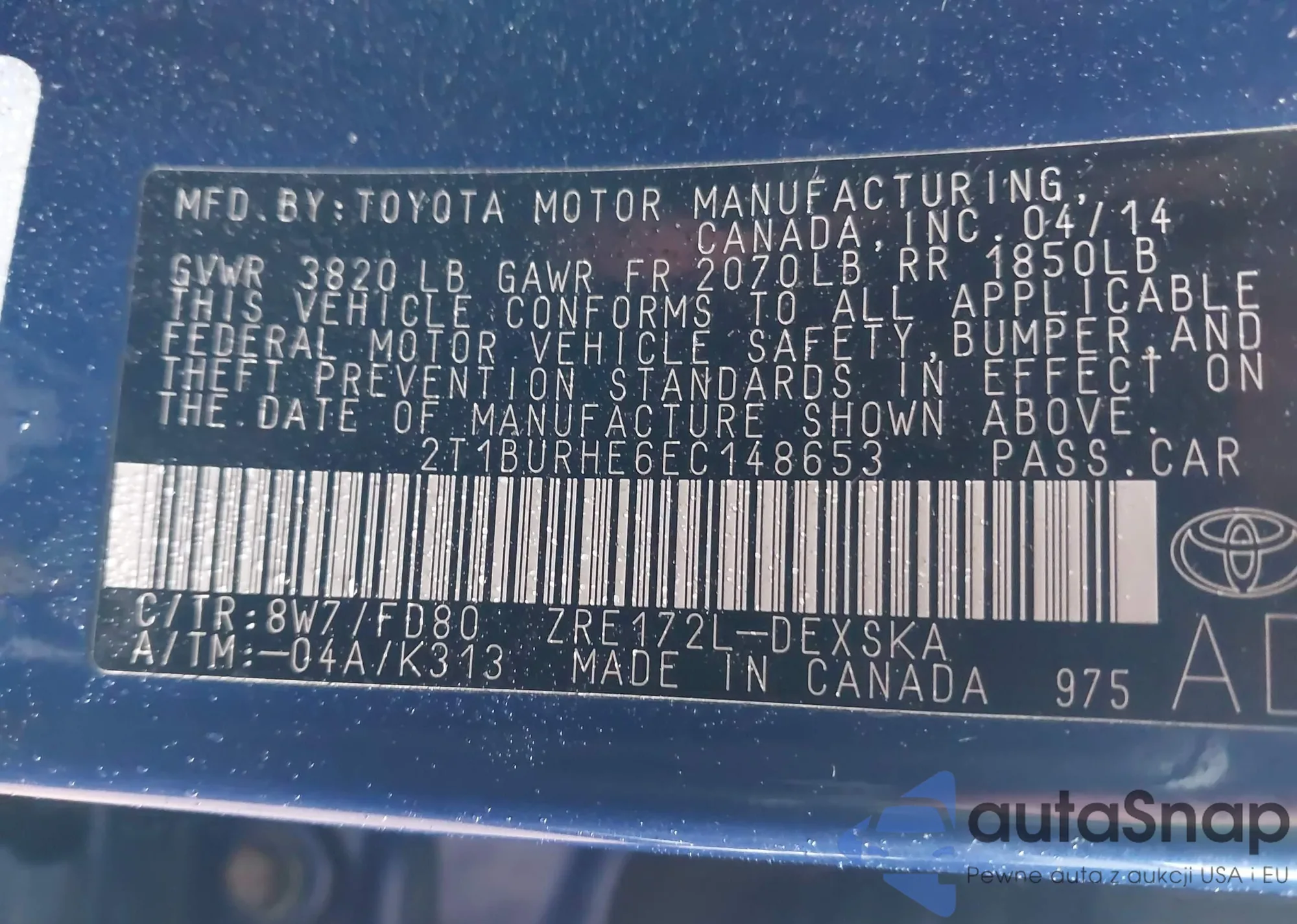 VIN: 2T1BURHE6EC148653
