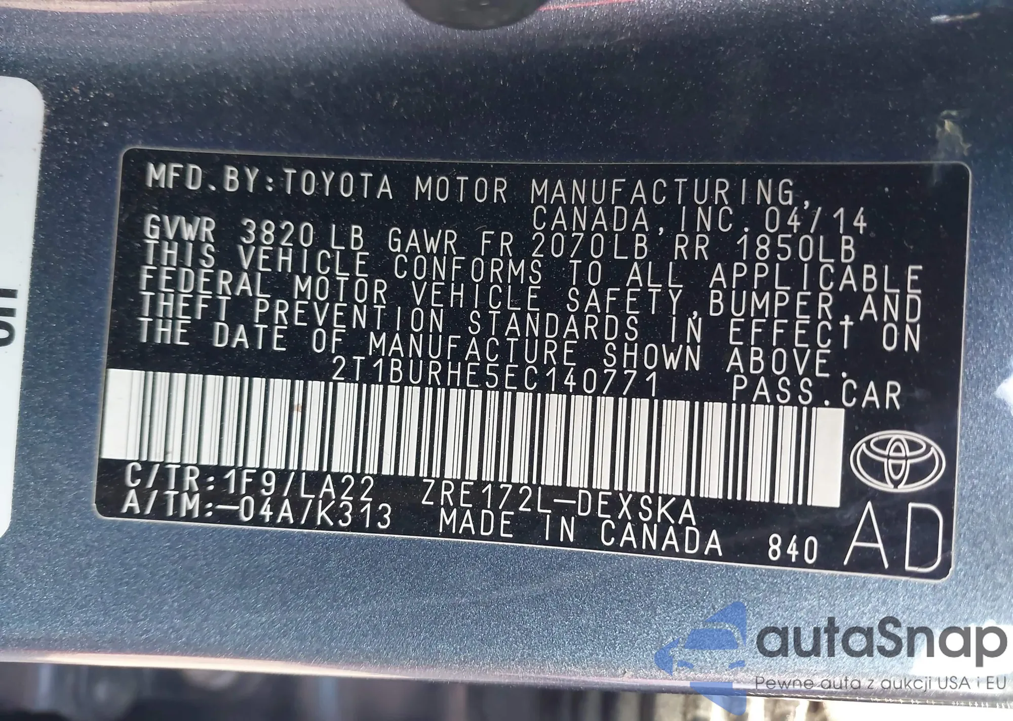 VIN: 2T1BURHE5EC140771