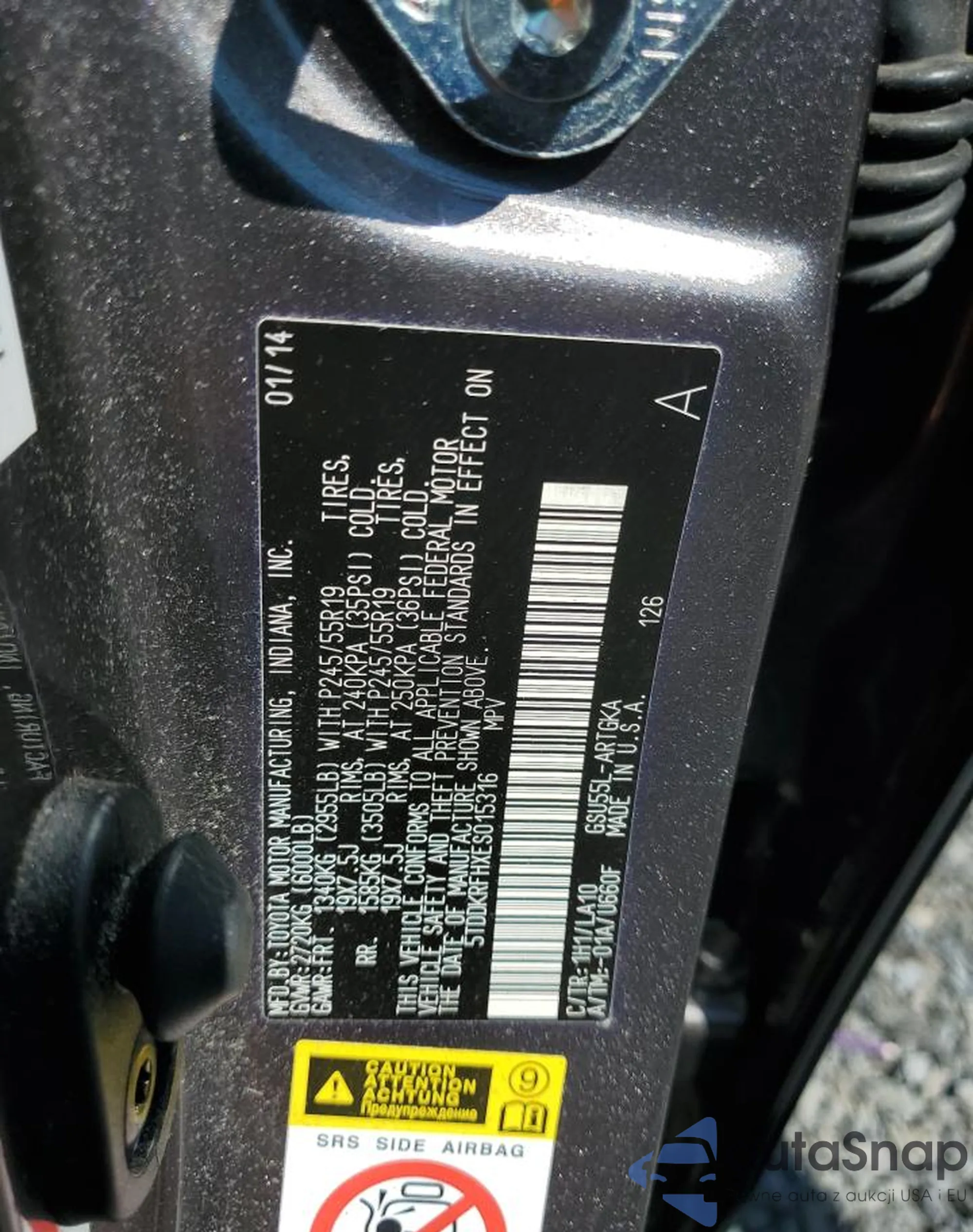 Toyota Highlander 2014 – Vehicle History (Sold at COPART)