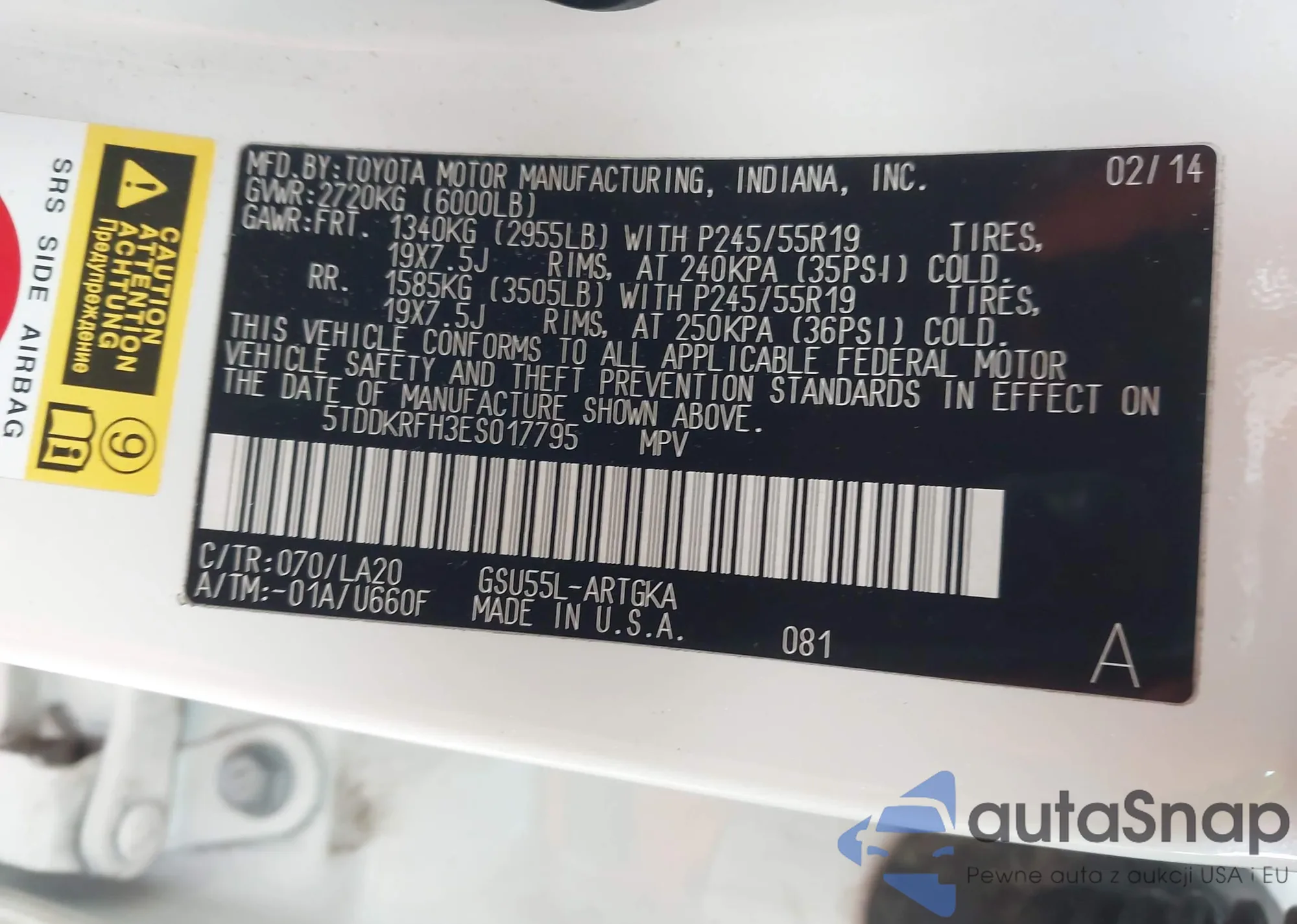VIN: 5TDDKRFH3ES017795