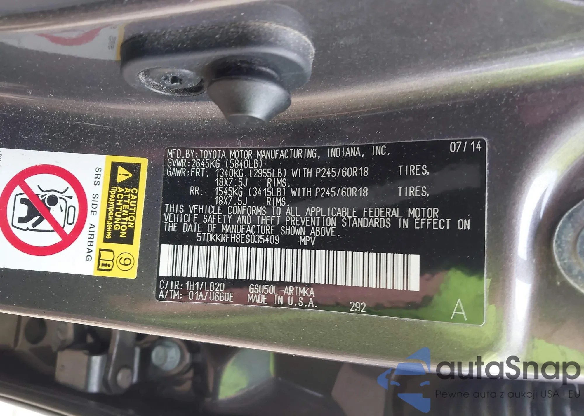 VIN: 5TDKKRFH8ES035409