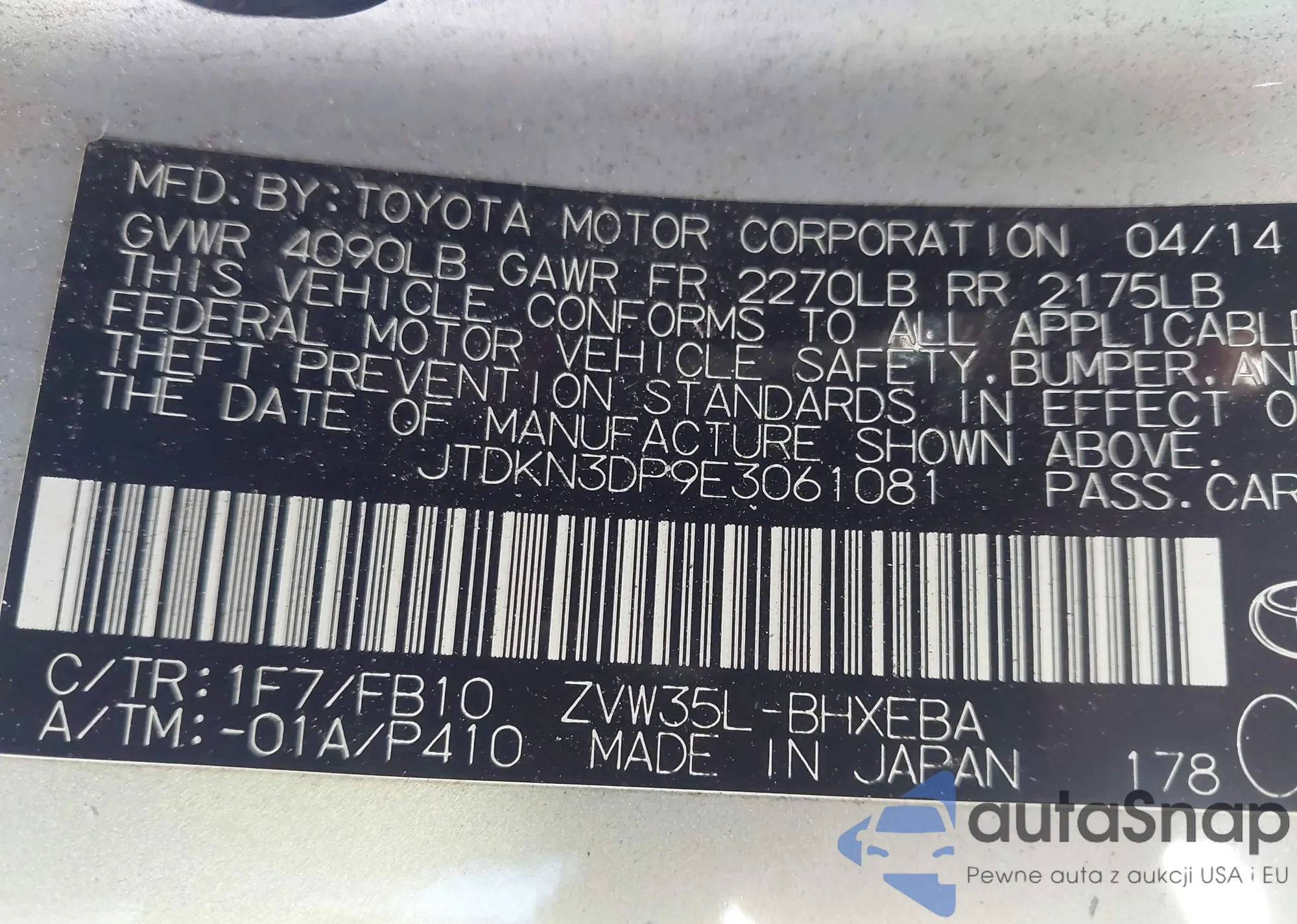 VIN: JTDKN3DP9E3061081