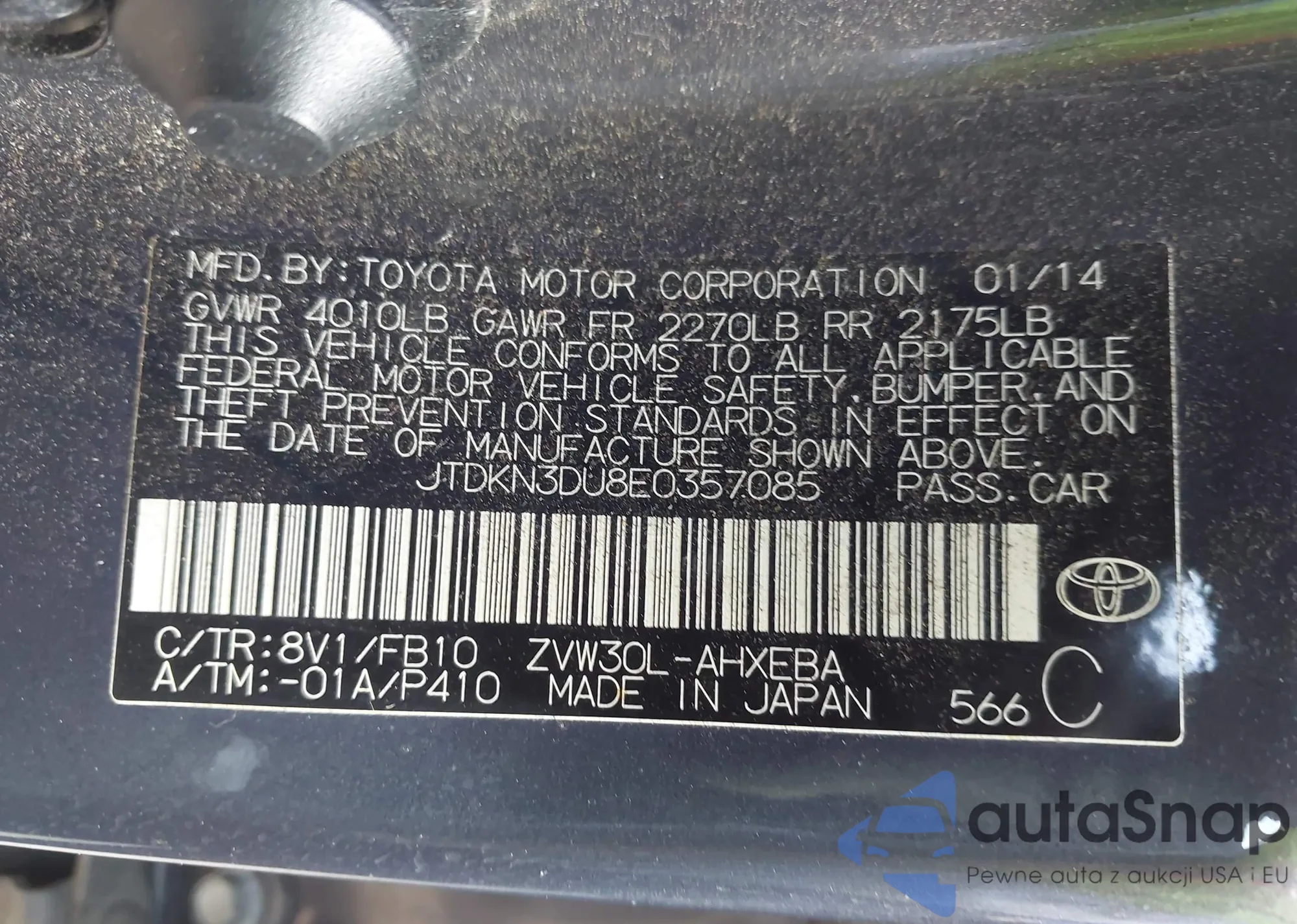 VIN: JTDKN3DU8E0357085