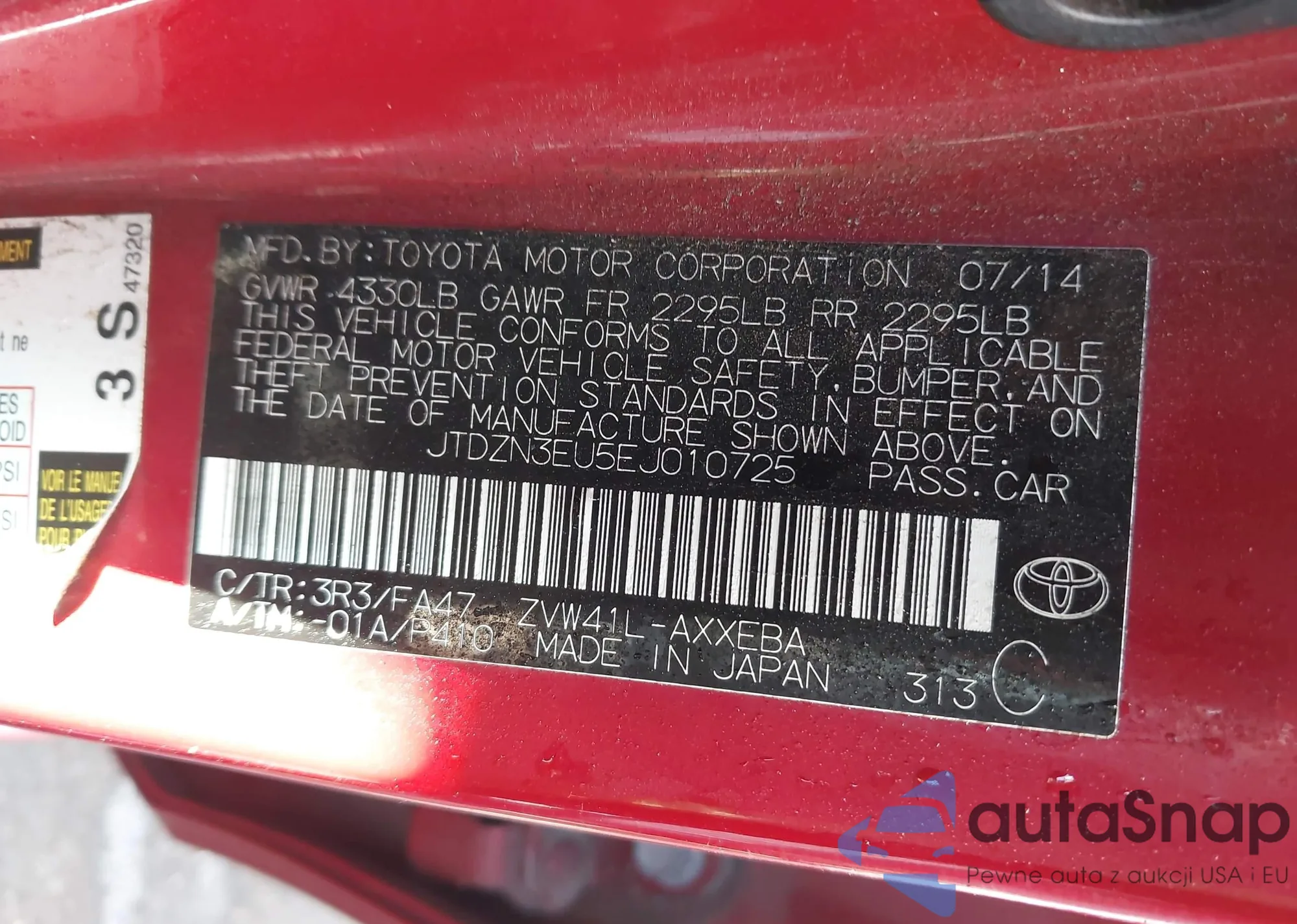 VIN: JTDZN3EU5EJ010725