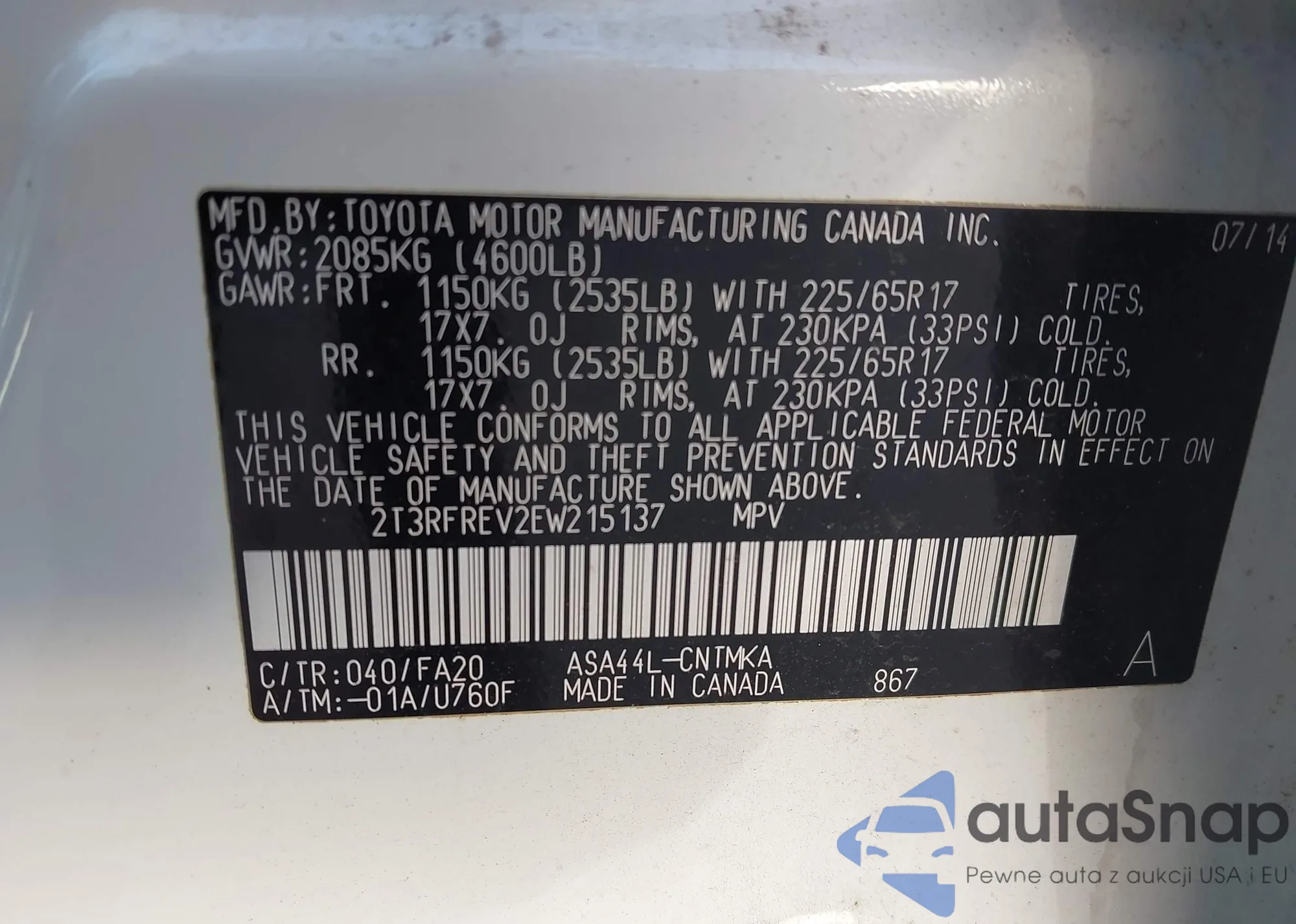 VIN: 2T3RFREV2EW215137