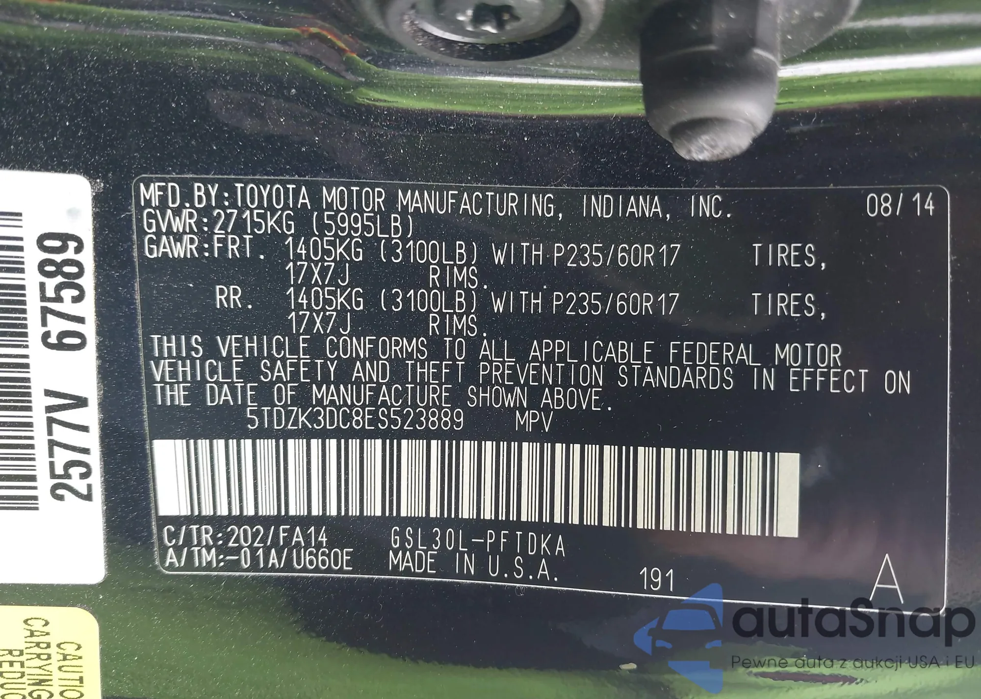 VIN: 5TDZK3DC8ES523889