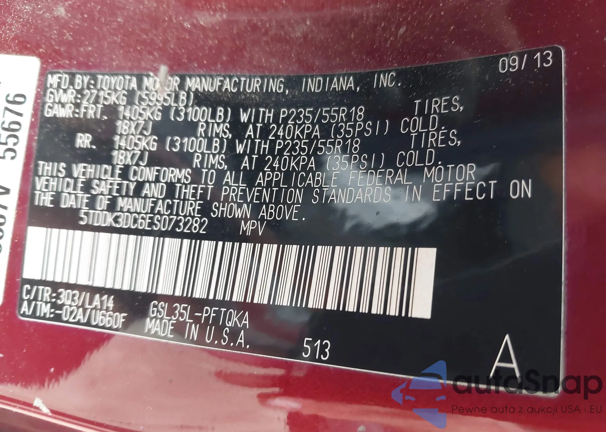 VIN: 5TDDK3DC6ES073282