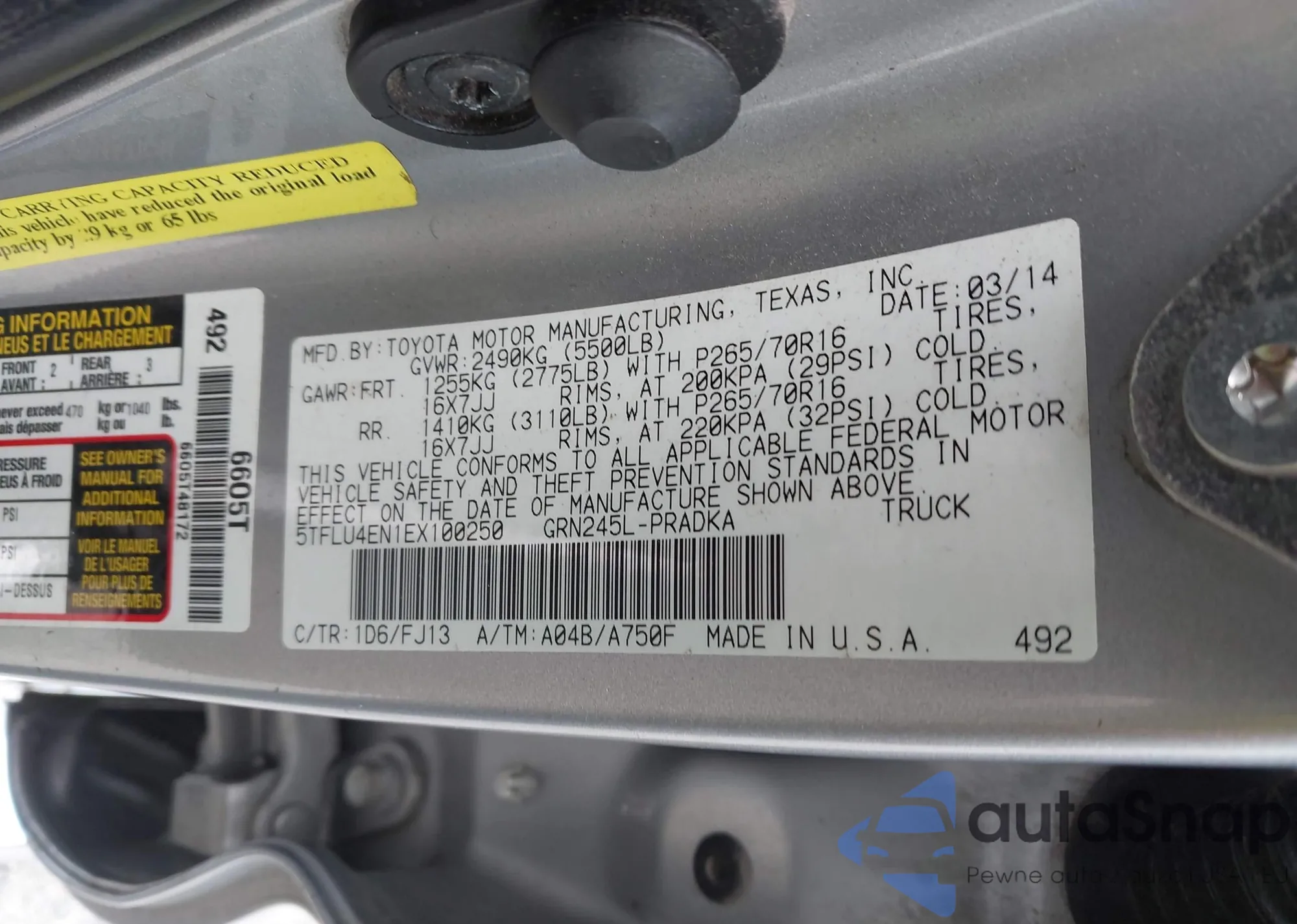 • VIN: 5TFLU4EN1EX100250