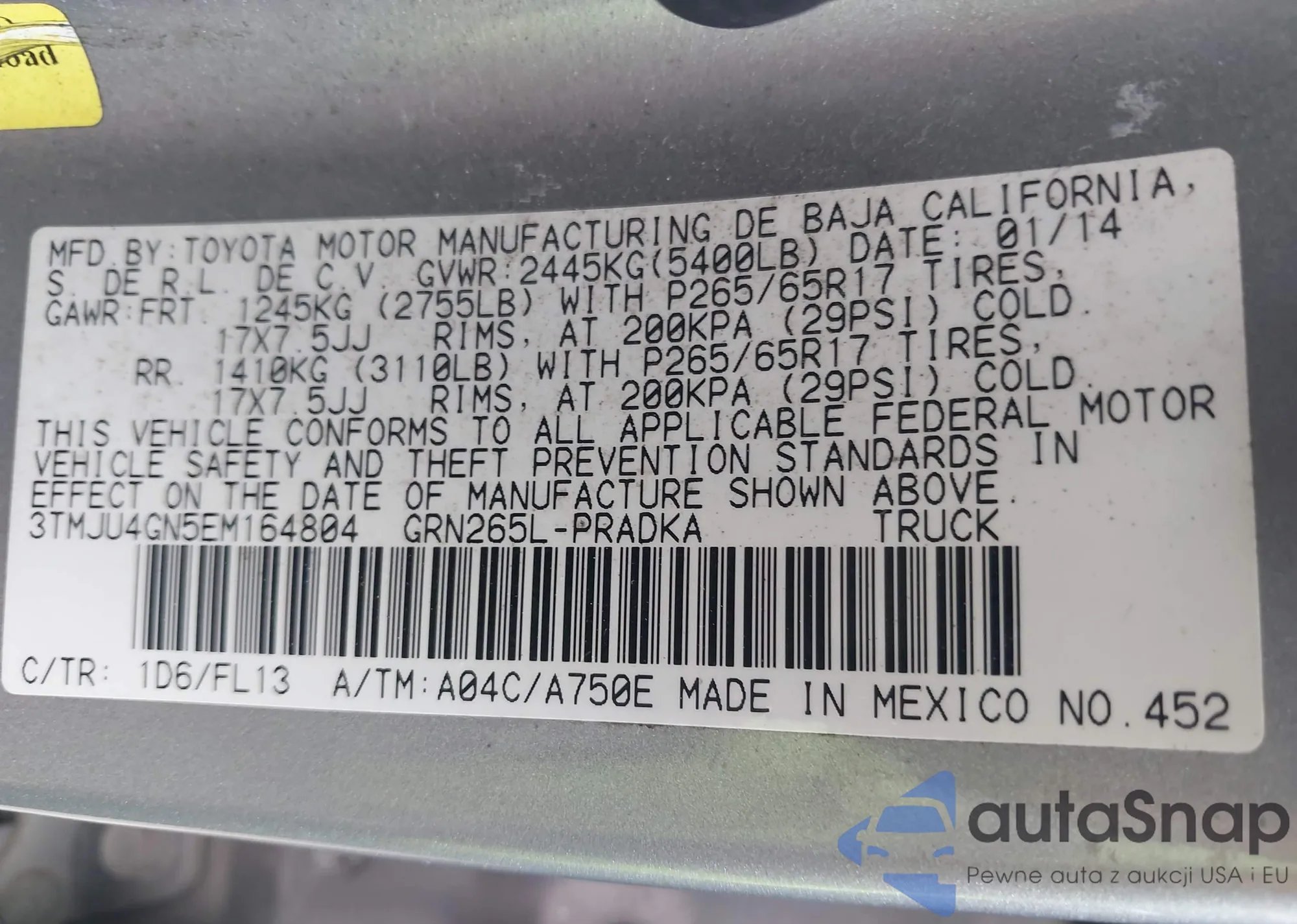 VIN: 3TMJU4GN5EM164804