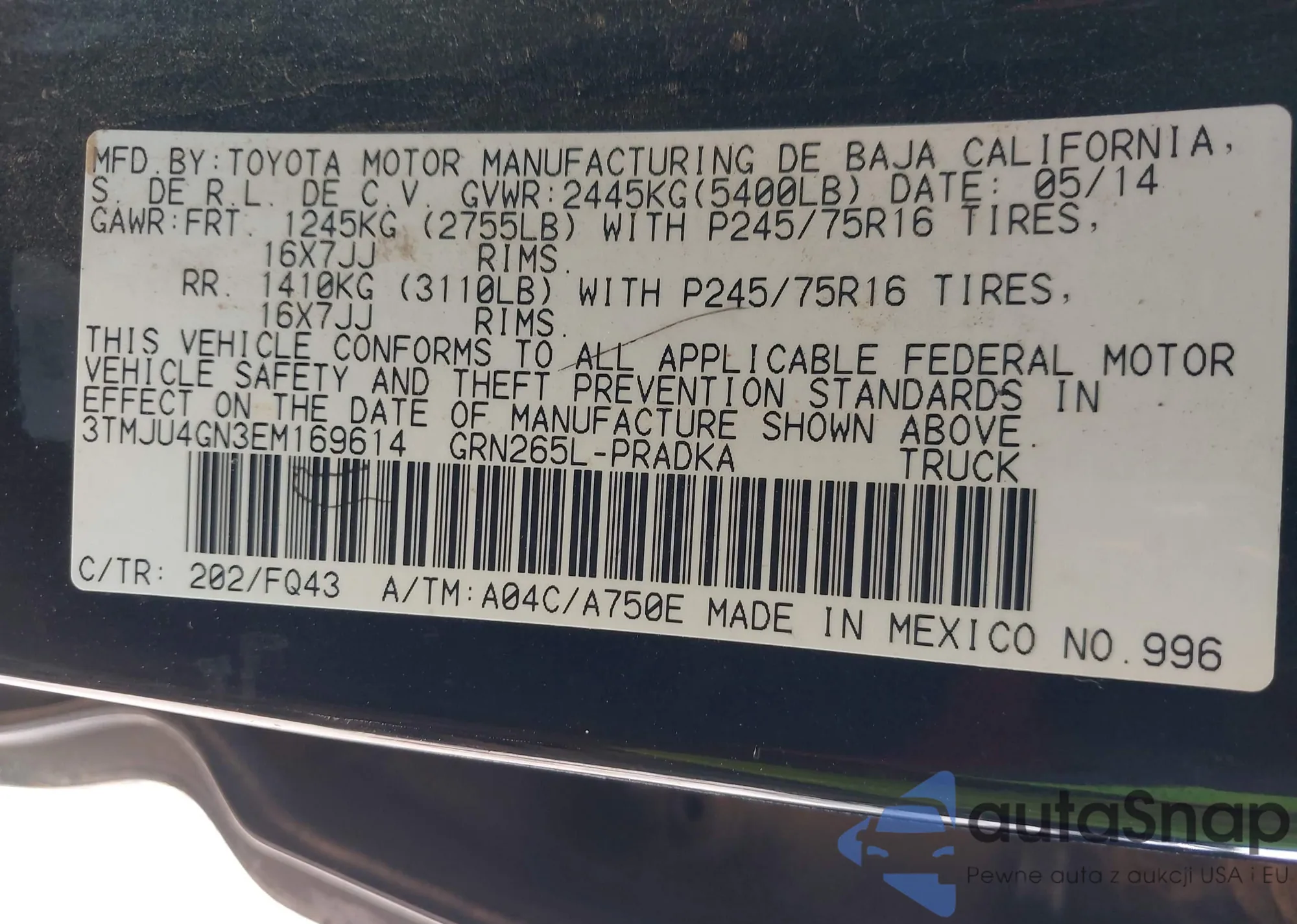 VIN: 3TMJU4GN3EM169614
