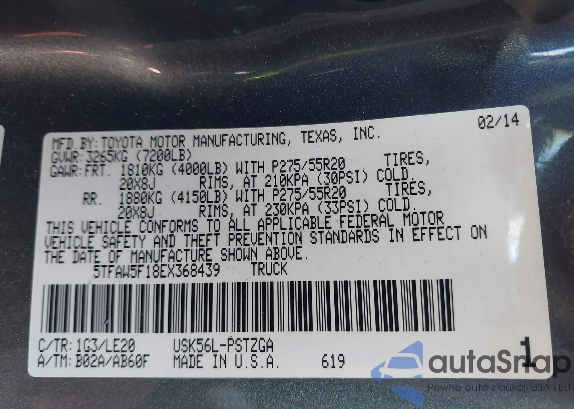 VIN: 5TFAW5F18EX368439