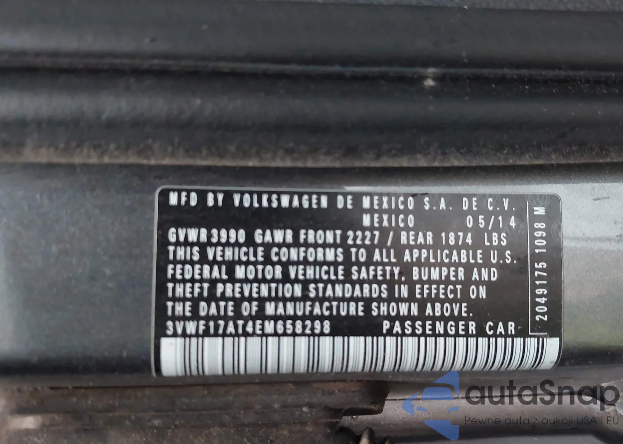 VIN: 3VWF17AT4EM658298