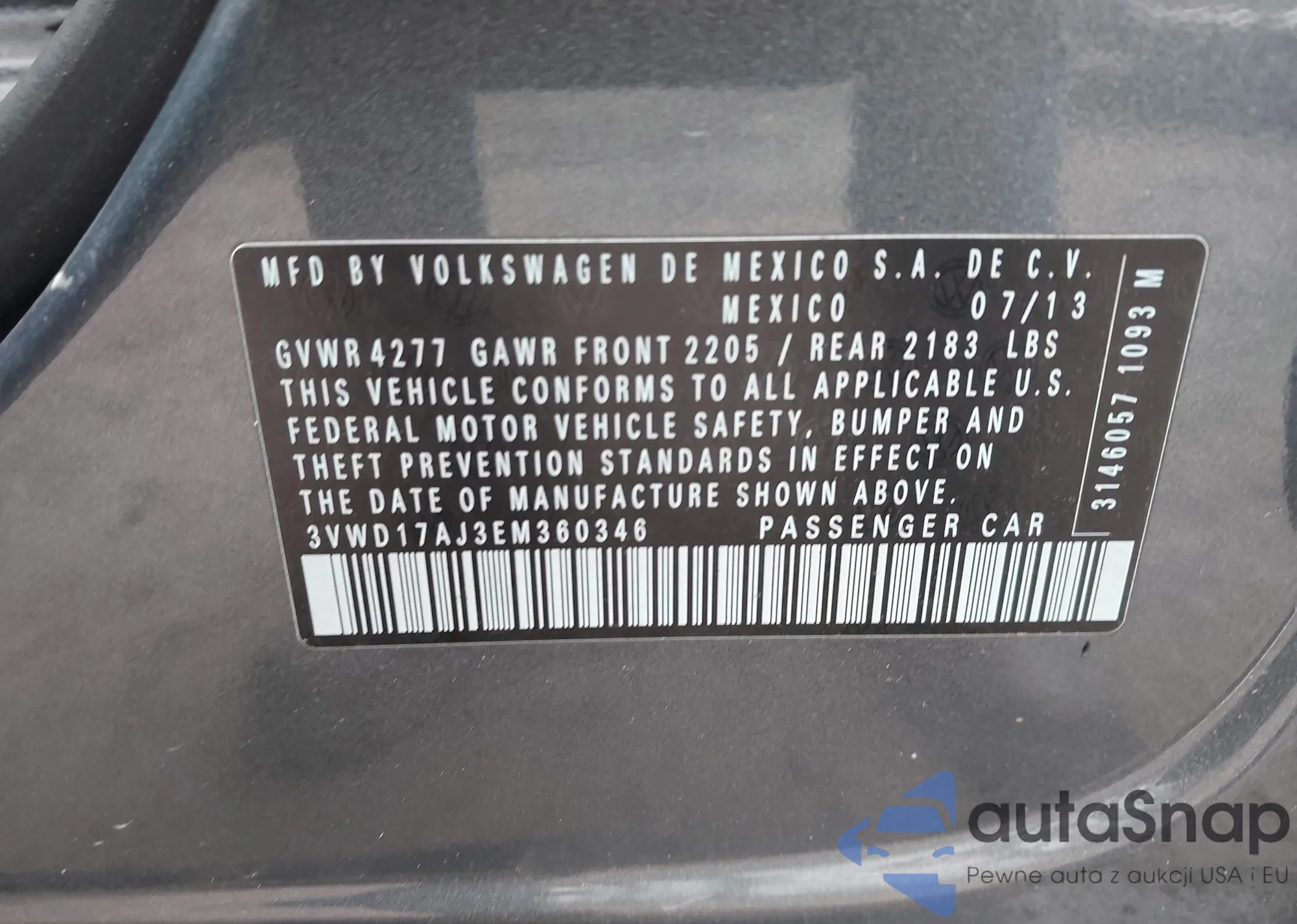 The car Volkswagen Jetta 2014 (VIN 3VWD17AJ3EM360346) is sold by an unverified seller. We recommend checking the Carfax report and confirming registration possibilities before purchase.