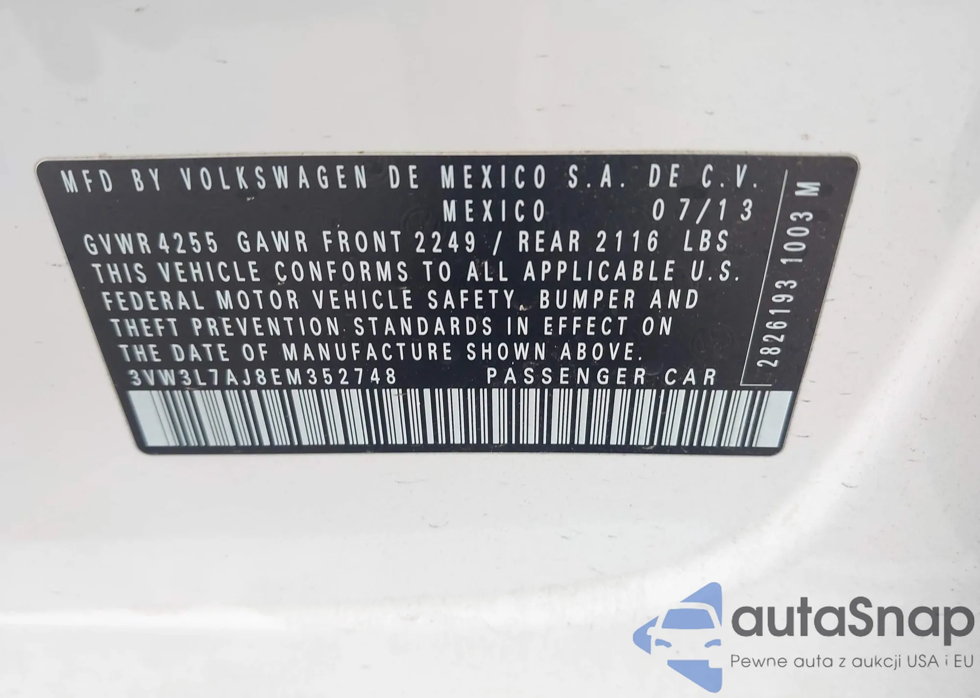 VIN: 3VW3L7AJ8EM352748