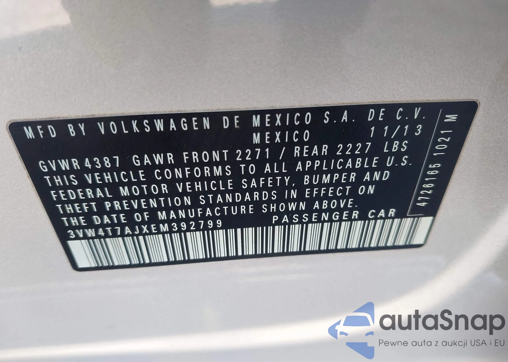 VIN: 3VW4T7AJXEM392799