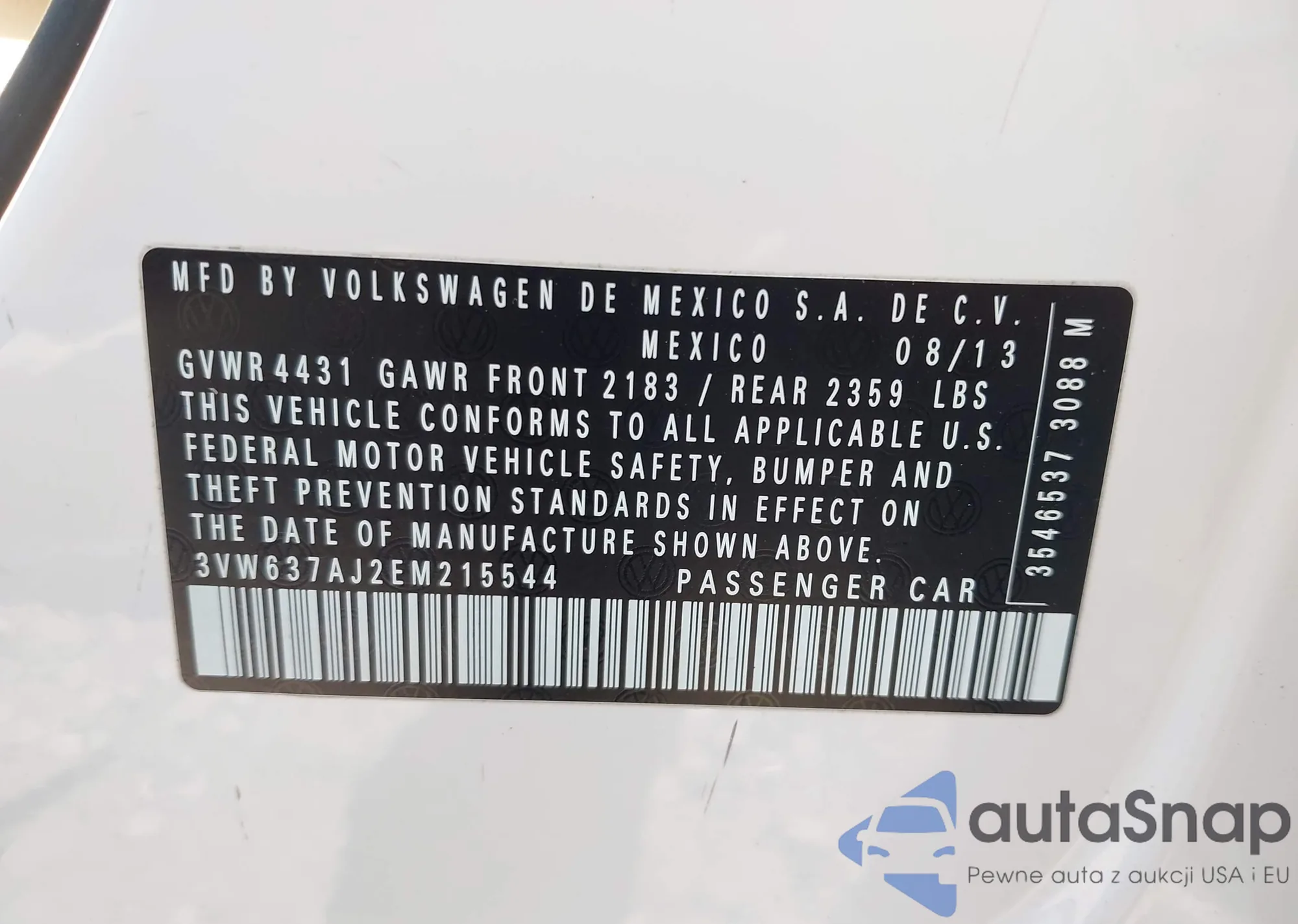 VIN: 3VW637AJ2EM215544