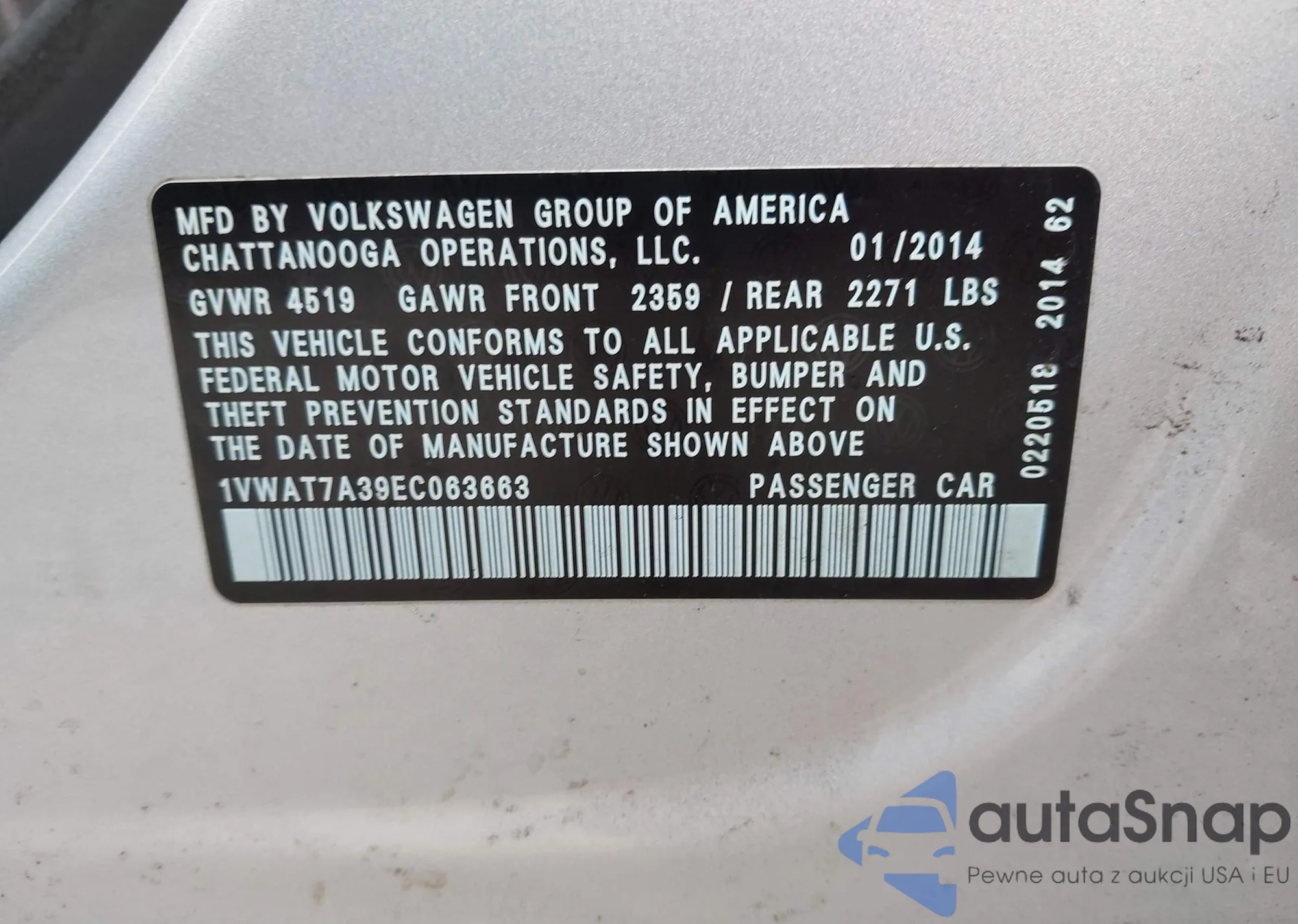 VIN: 1VWAT7A39EC063663