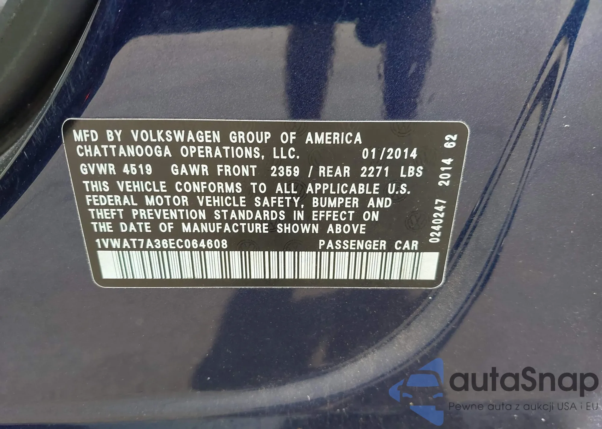 VIN: 1VWAT7A36EC064608