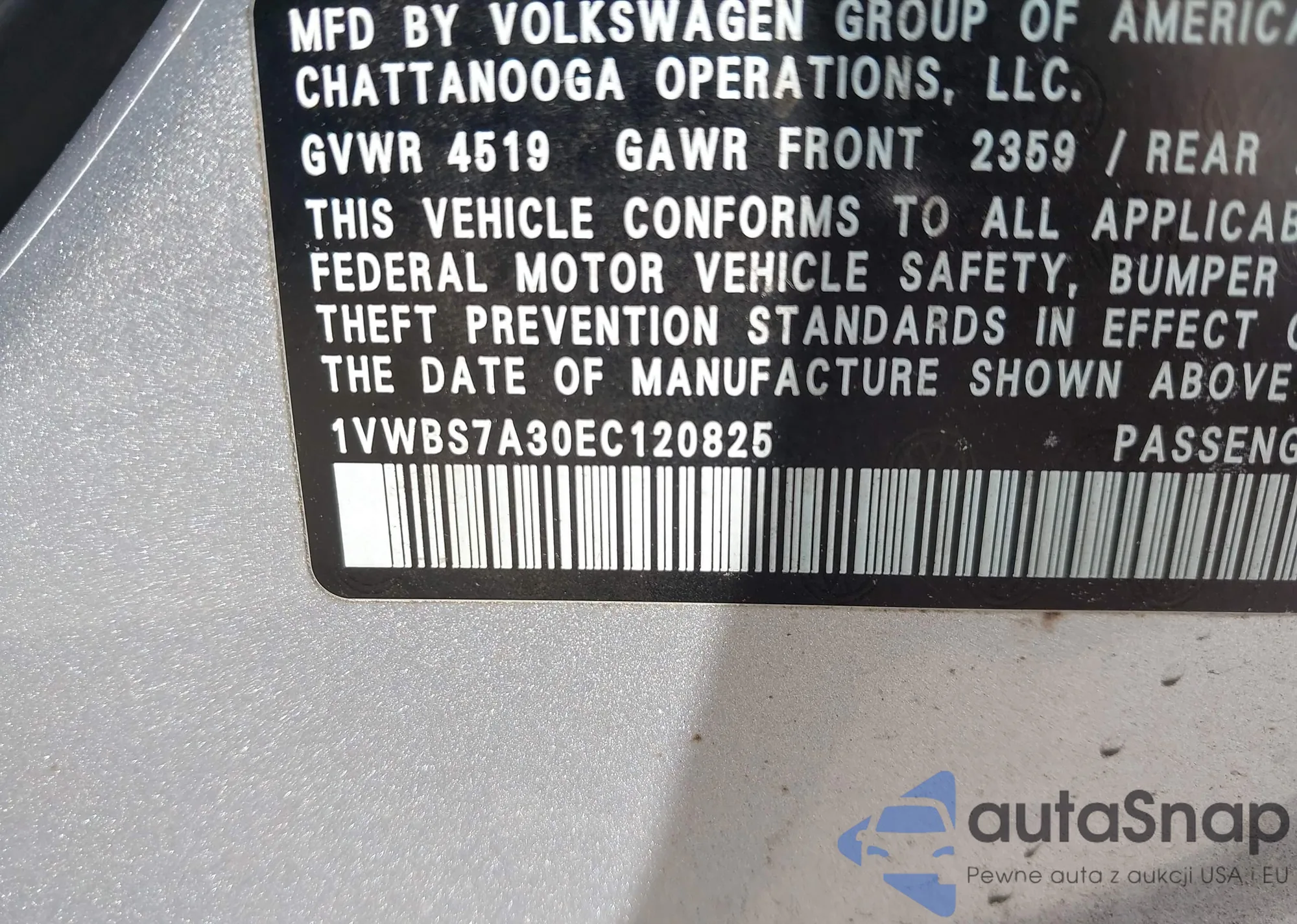 VIN: 1VWBS7A30EC120825