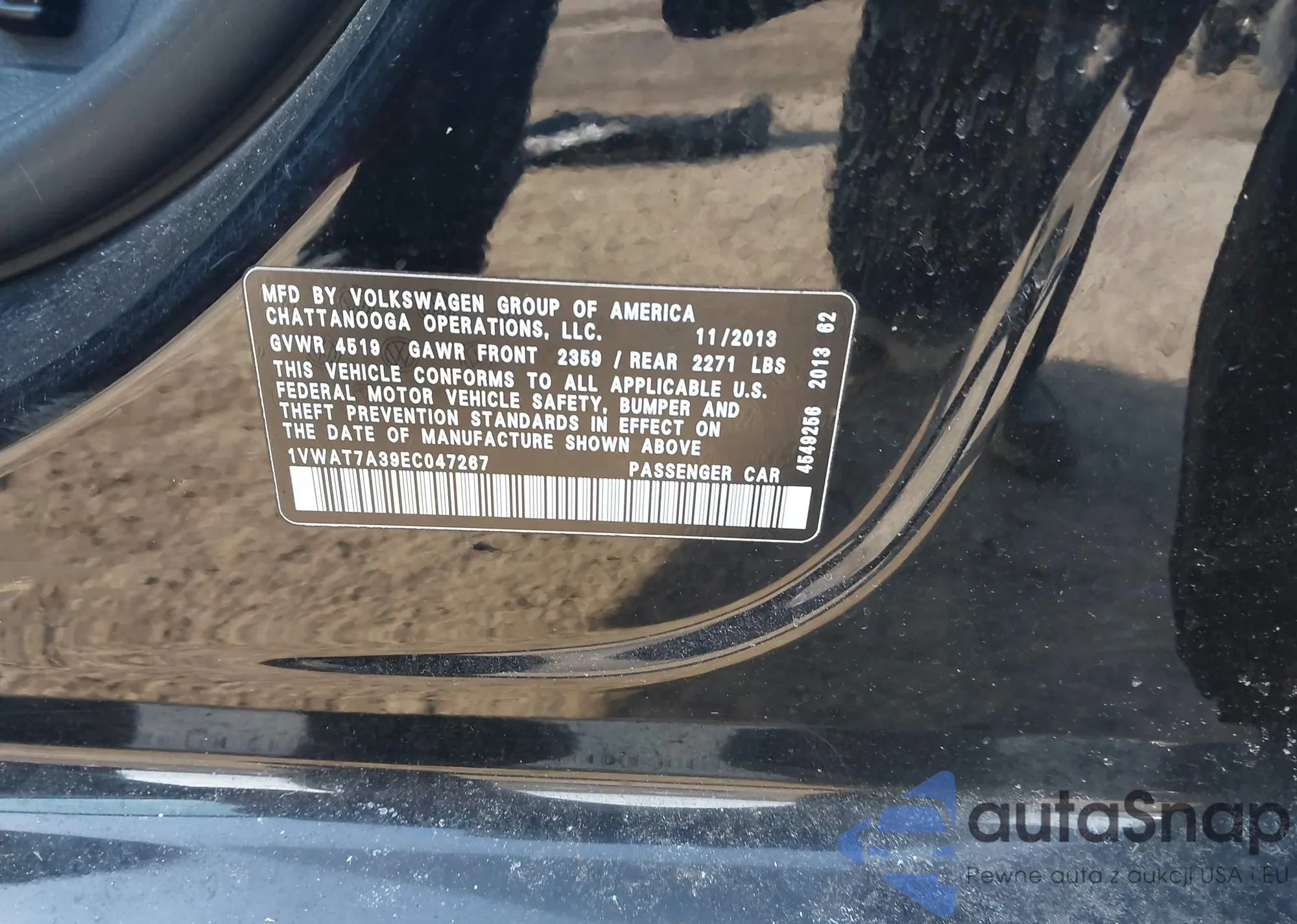 The car Volkswagen Passat 2014 (VIN 1VWAT7A39EC047267) has not been auctioned before. The documents are clean, and the mileage matches or is below the market average. Sold by an insurance company – we recommend purchase. Delivery to the port will take approx. 6–8 weeks.